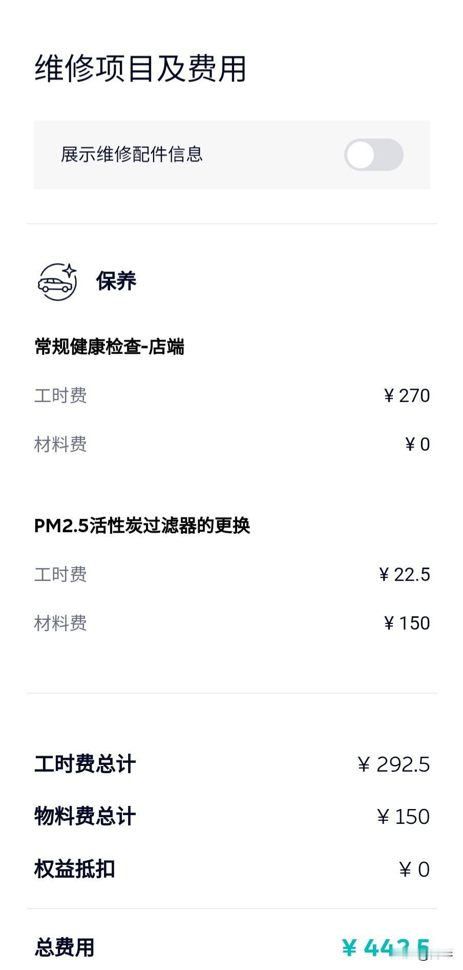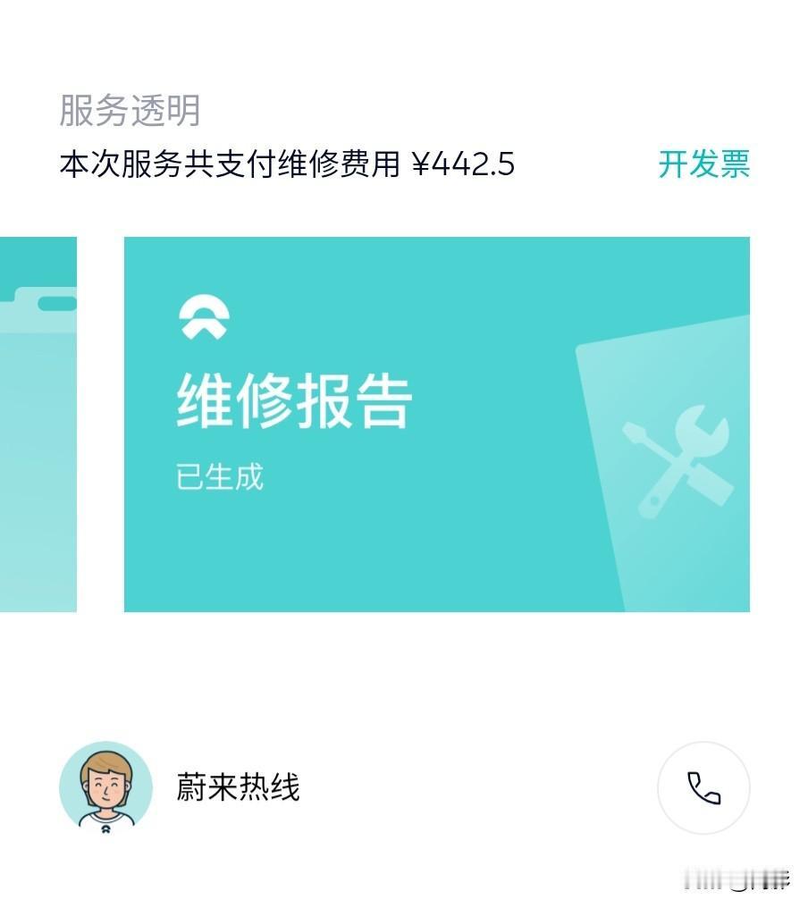 蔚来10万公里保养费用:442.5元 〔第一代ES8〕