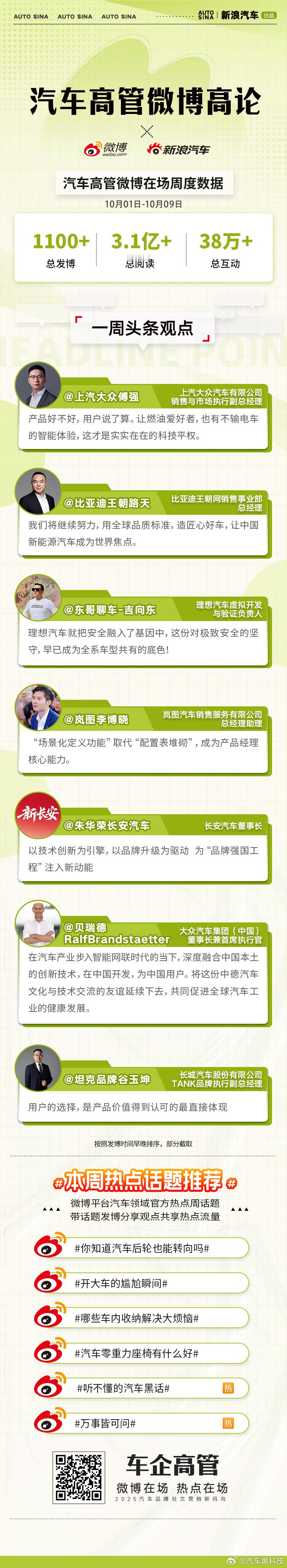 聚焦用户,创新技术,共同塑造中国汽车新未来,汽车高管微博高论,省流速览微博一周高