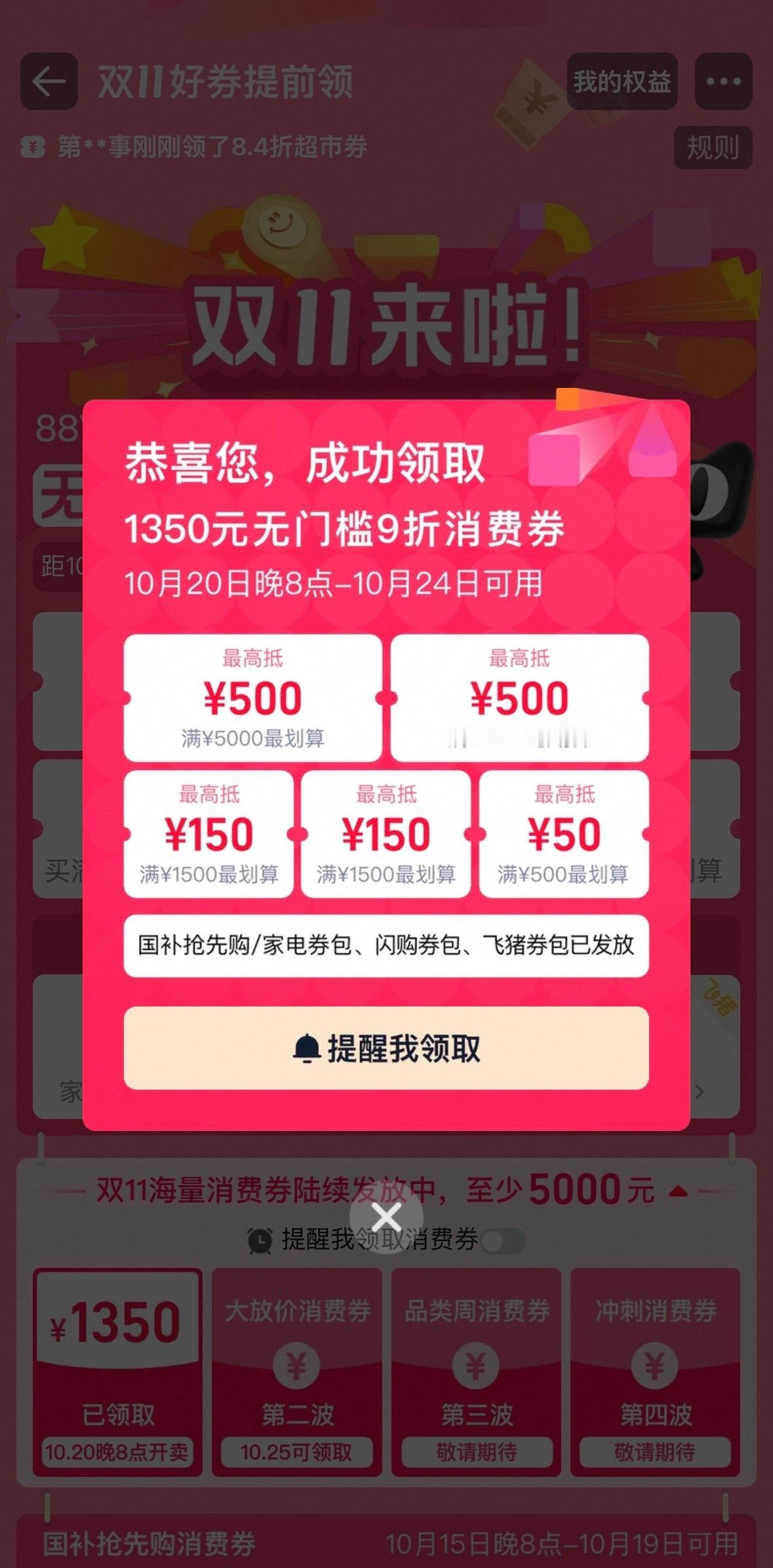 今年要买的不多,我也早早决定不再折腾,结果这会儿偶然点开天猫,发现他们今年的88VIP无门槛9折消费券,今天直接就能领,不用抢!我领的时候还将信将疑,但看了一下规则,嚯,今年的券真的超级无敌大!3250元3套11张的卷包,数量和面额都给得很大方,感觉是史上补贴力度最大的一次哈哈哈,这真是让我恨装修时机不对啊!不说了,赶紧上淘宝搜【88VIP领券】领劵吧大家伙天猫双11今天就补3250元天猫双11才是真优惠天猫双11