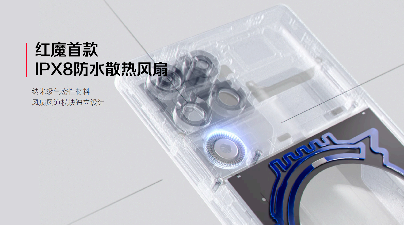 水冷散热技术(脉动水冷引擎):首款应用于手机的主动水冷系统,结合风冷(驭风4.0风扇)形成风冷水冷双散热。使用氟化液作为冷却液(耐温范围-60°C~108°C),解决极寒/极热环境下凝固/汽化问题。而且是微型化设计,0.03mm液体流道、0.85mm超薄压电陶瓷微泵(80mW低功耗)。