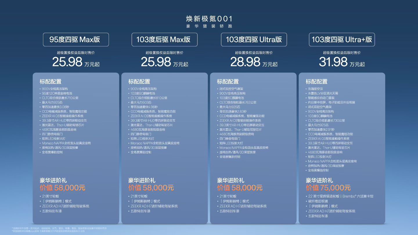 价格来了焕新极氪001正式上市限时售价25.98万元起