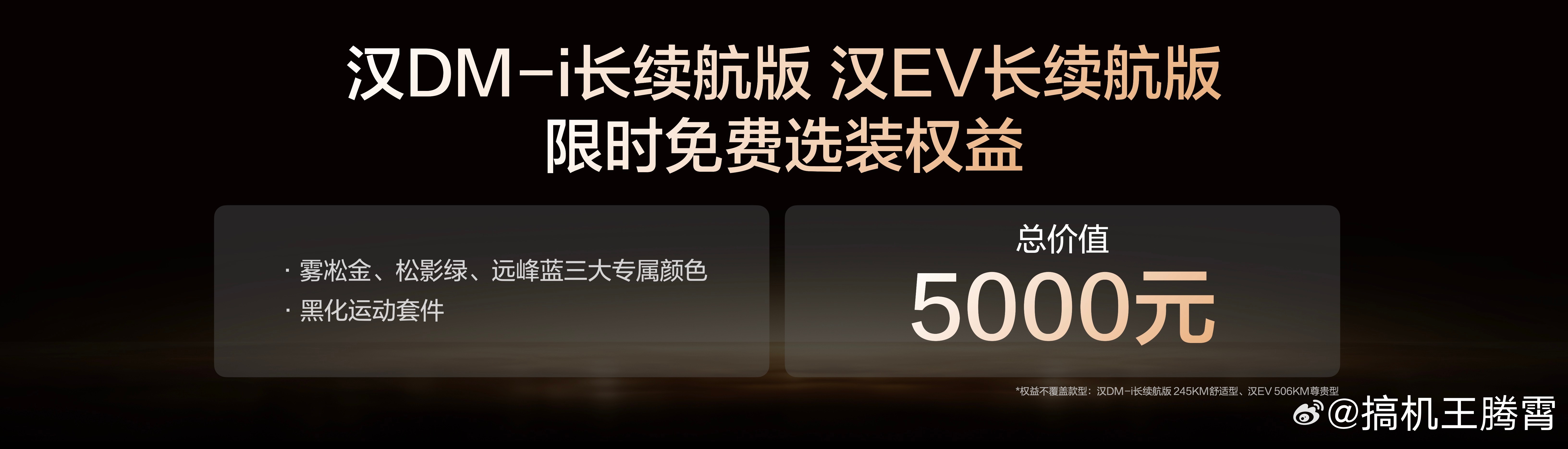 并且新车在很多方面做了优化,智能方面,“天神之眼”辅助驾驶靠30个传感器覆盖了高快、城市路况。同时云辇-C系统还能提前15米预瞄路况,可以有效提升乘坐舒适性,搭配上DM-i长续航版搭载的第五代DM技术,EV长续航版升级的八合一电驱系统,动力完全不用担心,全系配后五连杆悬架,零百加速仅6.9秒,还延续了刀片电池和11个气囊的安全配置,整体体验全面满足了我们对出行的各种需求,比亚迪汉长续航版15.98万起上市,这价格还是非常香的,可以冲[笑而不语]