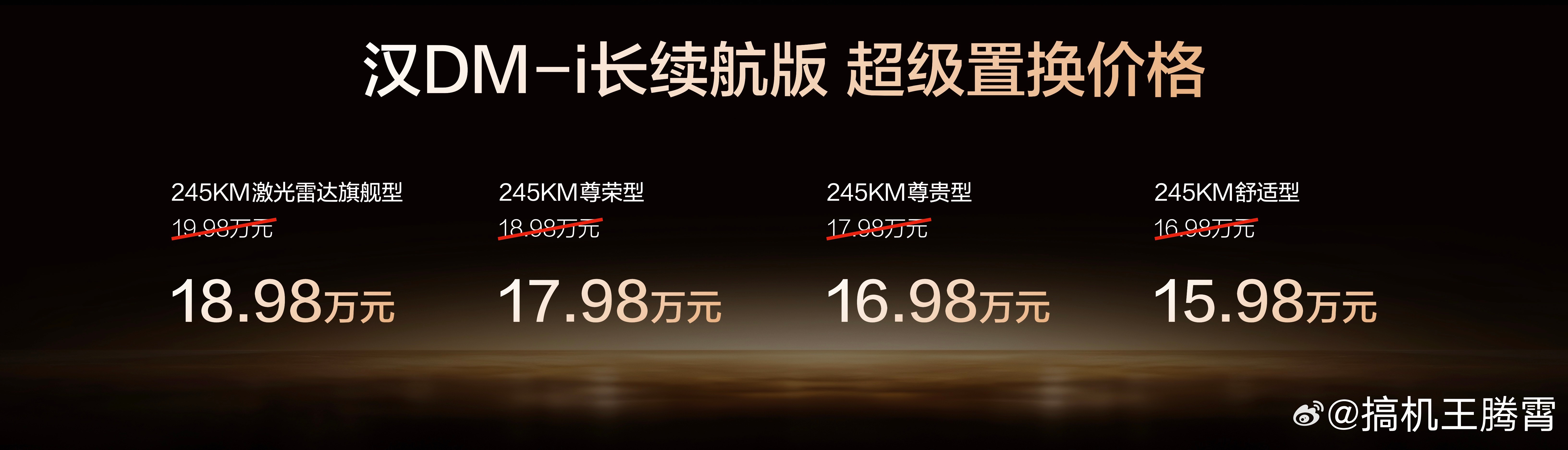 比亚迪汉上新245公里长续航比亚迪汉长续航版正式上新,我细看了下还真不错,汉DM-i 245KM长续航版纯电续航达到了245km,满油满电可以跑1560km,而汉EV长续航版电耗仅10.6kW·h,这电耗控制的就相当不错了,无论日常通勤还是长途出行都很省心。