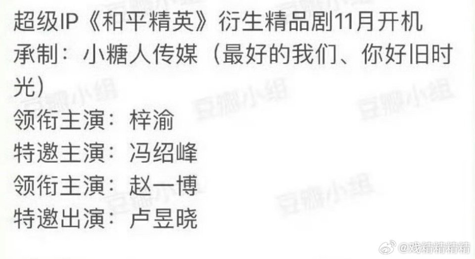 梓渝或演和平精英还有领衔主演是赵一博,特约主演冯绍峰、卢昱晓