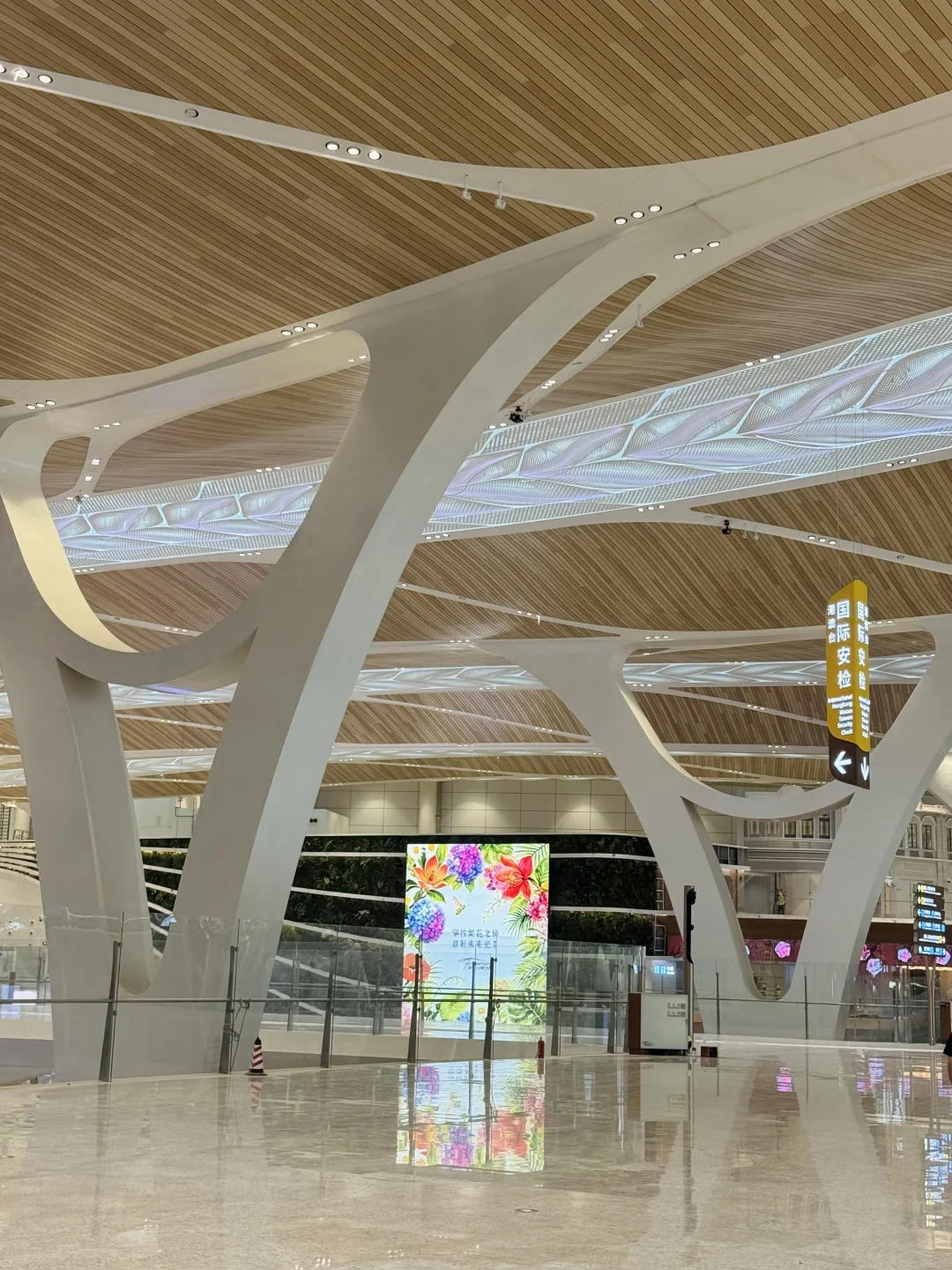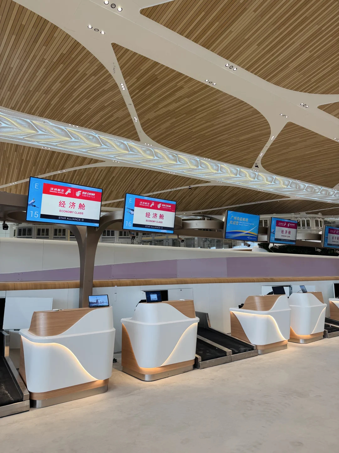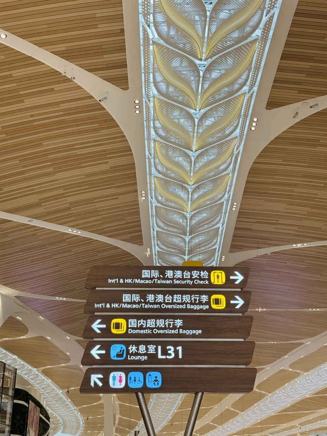 走进广州T3航站楼,我的第一个感受:这种原木风格的设计,可太招人喜欢了吧。中国人喜欢木质调,很多人都会把自己家里装修成原木风,日式原木风、奶油原木风、侘寂原木风……