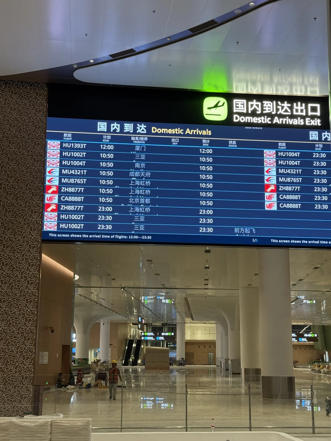 T1的国内外航司,到达口已经在测试滚动显示到达航班了
