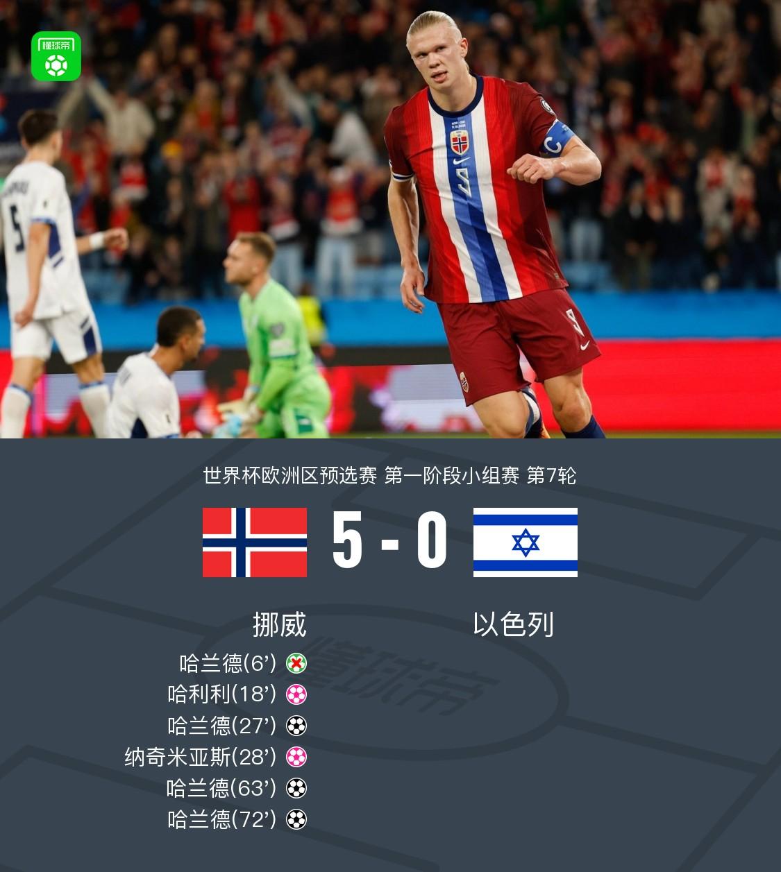 哈兰德终于要踢世界杯了!随着挪威5比0大胜以色列,挪威基本一只脚踏进明年世界杯决