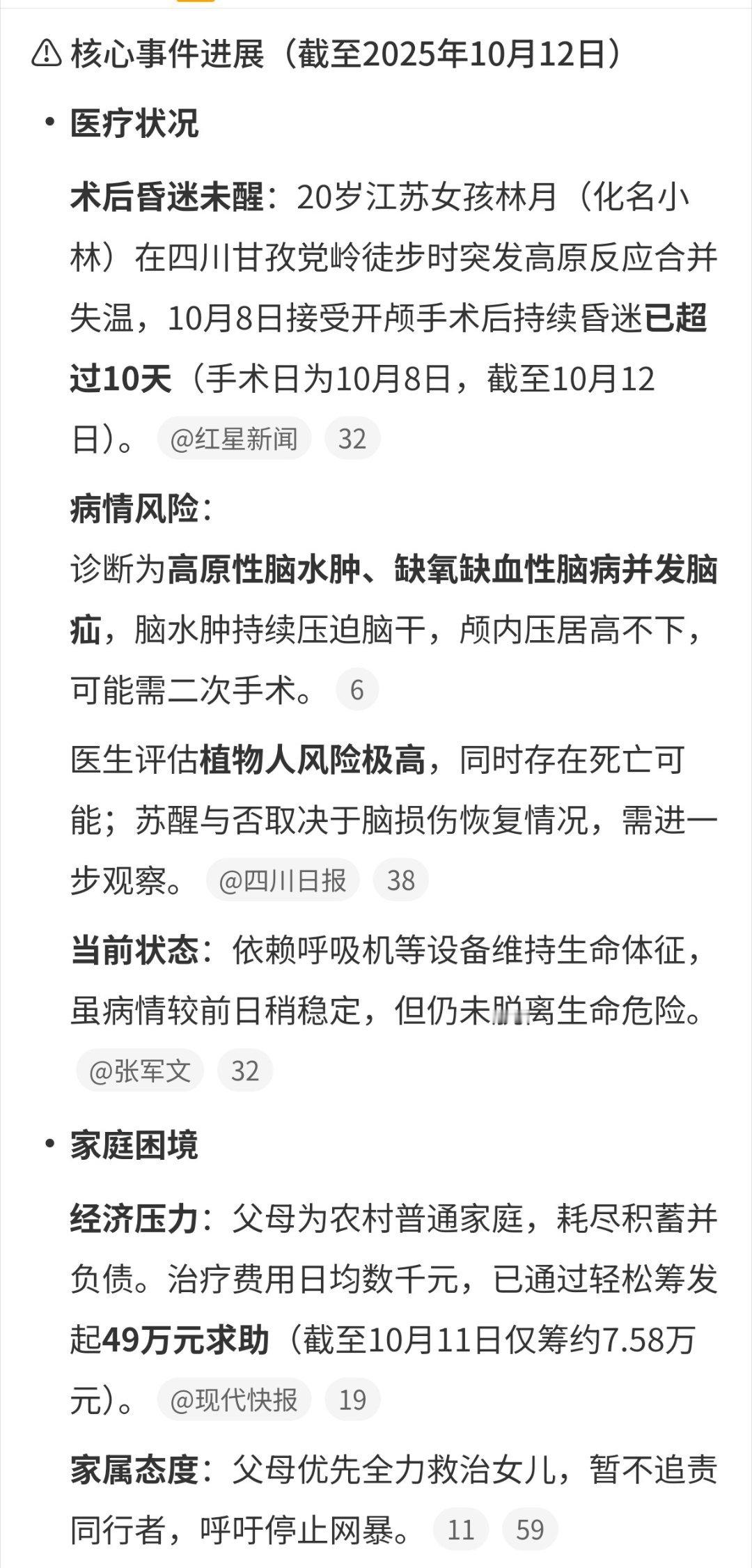 高反失温女孩术后已昏迷3天劝大家不要脑子一热就去冒险!什么“青春没有售价,疯狂就在当下”都是在拿命赌…