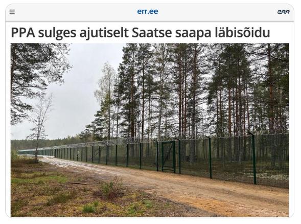 【据ERR报道,由于“可疑活动”,爱沙尼亚关闭了与俄罗斯接壤的一个边境口岸。】在