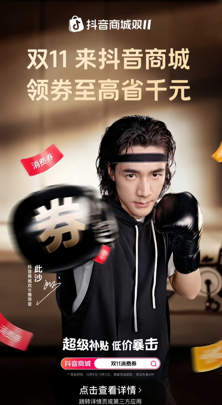 来自此沙的双11特别推荐抖音商城双11超补超低价 上抖音,搜「双11消费券」