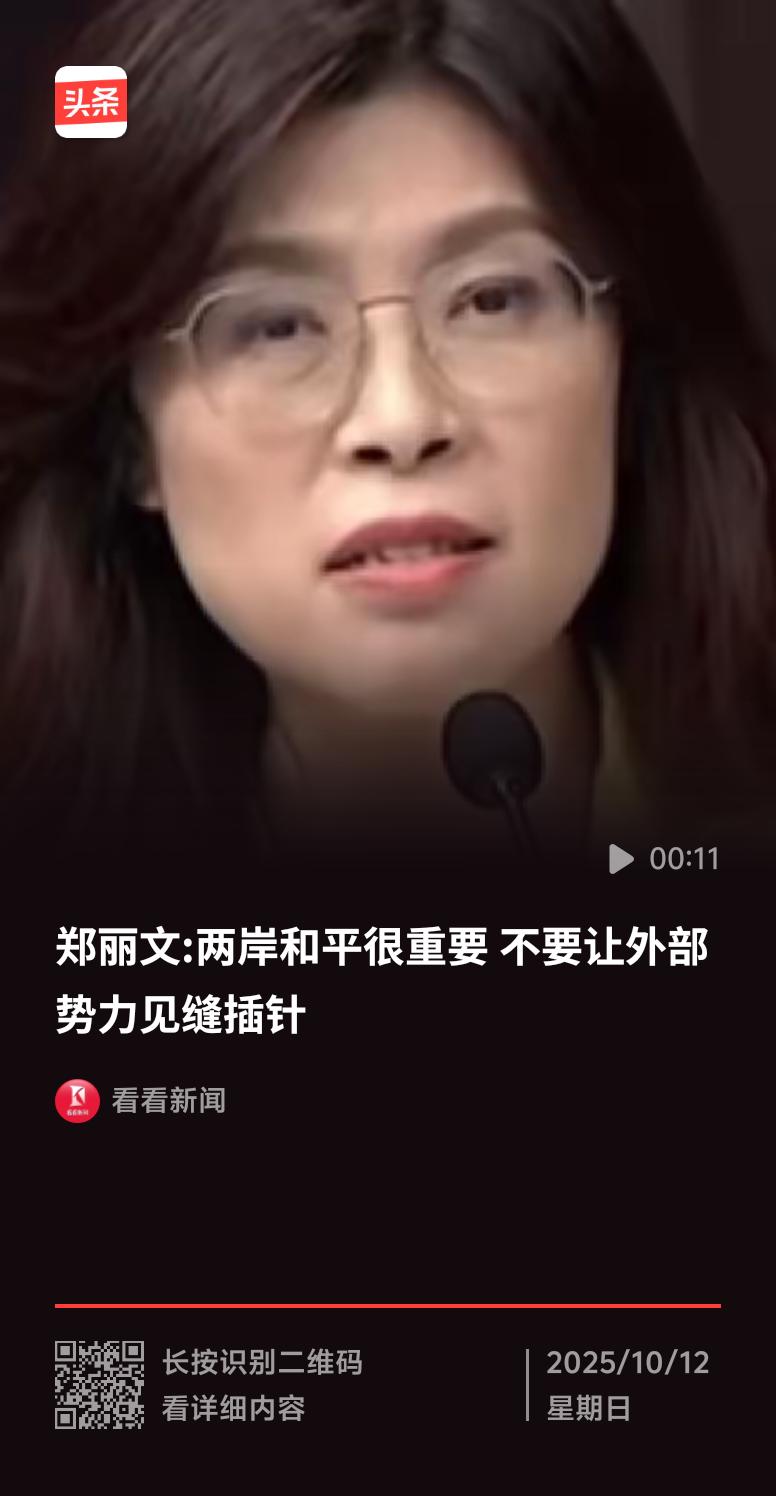 郑丽文谈两岸和平,说要别让外界见缝插针,这观点挺对。她曾指出推动两岸和平才能给台湾带来繁荣,让下一代有希望,还痛批民进党倒行逆施把台湾推向毁灭边缘。可她之前一句“当选要见高市早苗”给自己惹了麻烦,这言论得罪了岛内“军系”,让选举形势变复杂。她面对争议常让幕僚放话,给人缺乏担当的印象。在对日立场上若不回应,竞选蓝营党主席就有些不合适。毕竟绿营媚日已遭不满,蓝营主席若也如此,基层怎能放心。希望她能言行一致,真为两岸和平努力。 两岸和平宣言