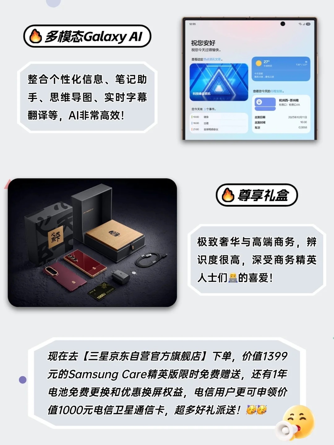 多模态Galaxy AI的加入,搭配上最新的三星One UI 8系统,上传办公文件自动提炼关键信息、生成思维导图、外国客户会议实时字幕翻译等等,都十分高效。