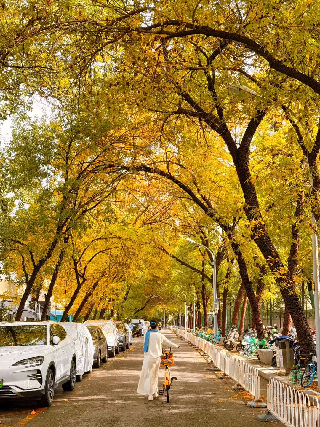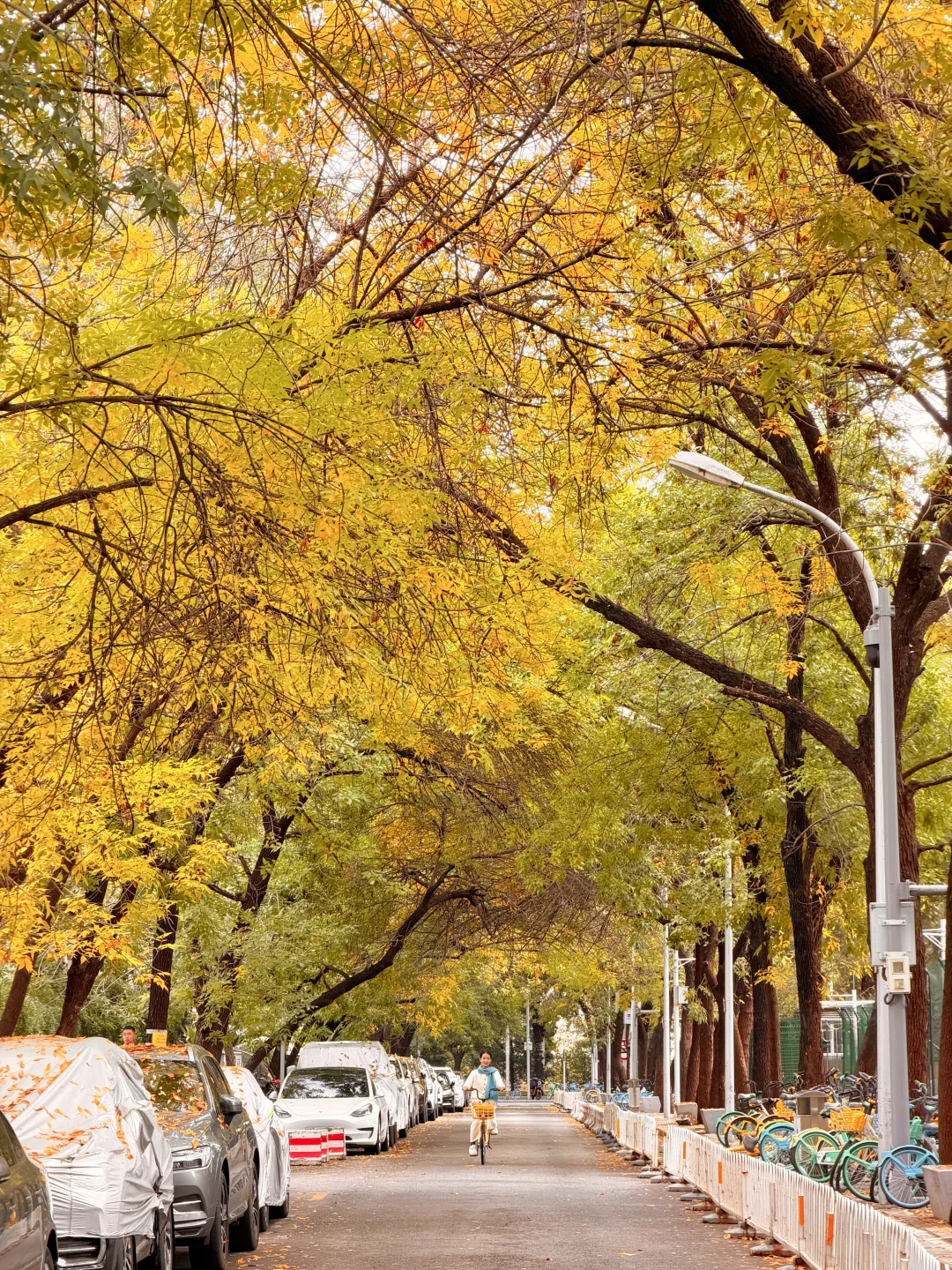 原以为昨天看过五四大街和东四十三条绿油油的场景后,以为市区里都没得看了,没想到这条白蜡树大道悄悄地开始变黄了~