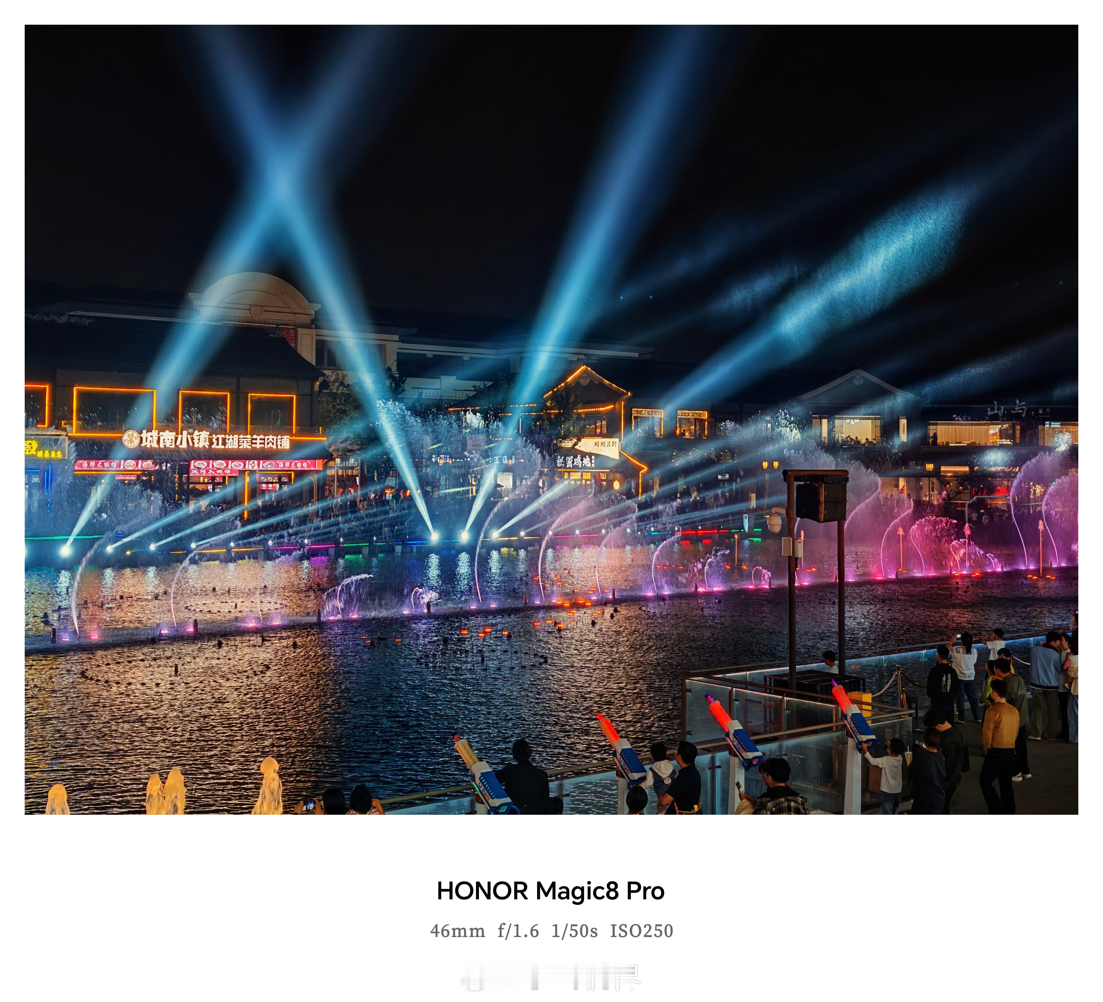 果然好夜景全靠手机给力!荣耀Magic8 Pro夜拍绝了——f/1.6大光圈配合多帧合成算法提升明显。喷泉用1/50s快门能凝固水花,暗光场景ISO控制在3200以内噪点依然细腻,可见硬件调校和算法优化下了硬功夫。
