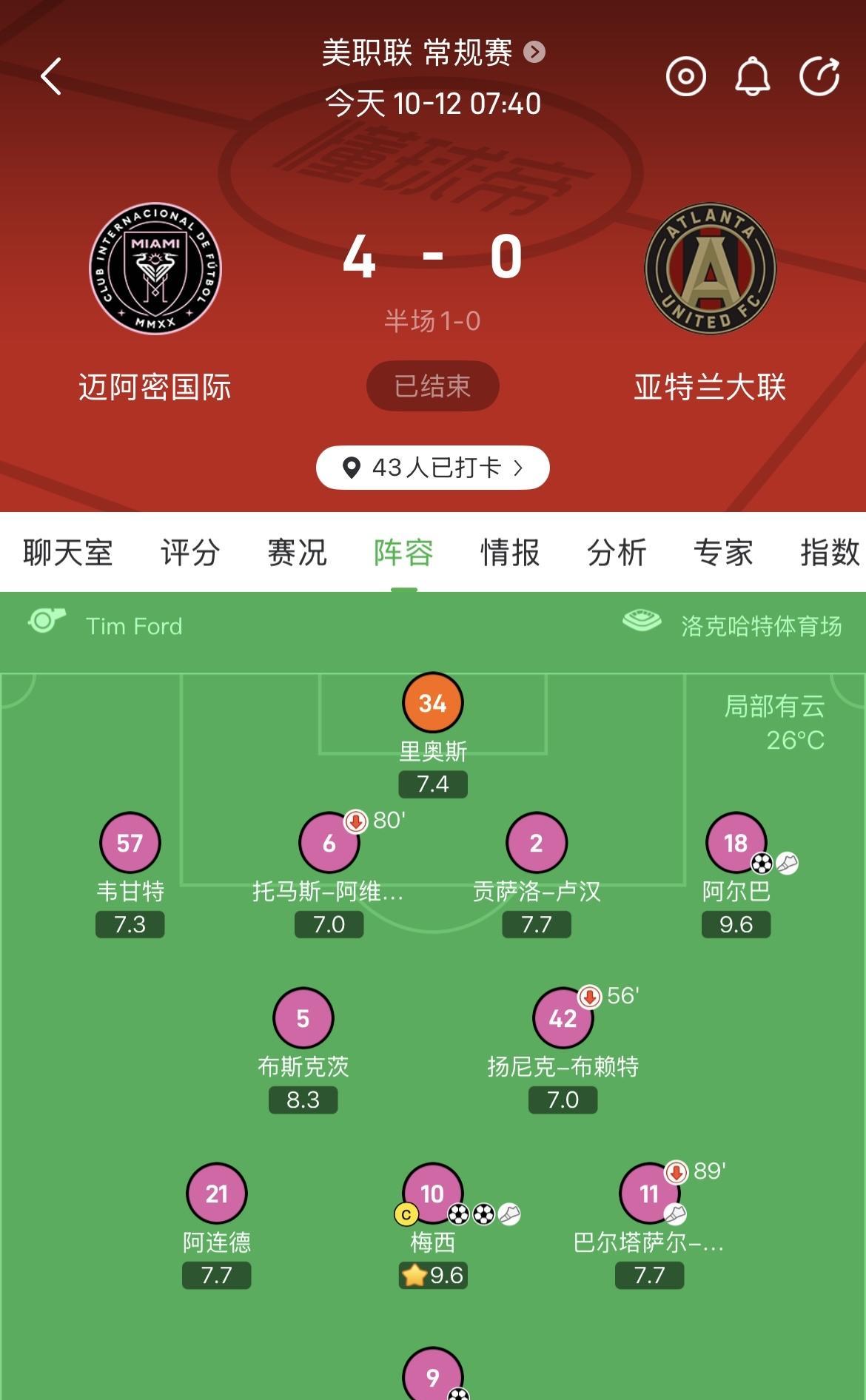 本来今天迈阿密国际的比赛梅西是不打算参加的,最近是国际比赛日,他已经去国家队报到了。但昨天阿根廷队的友谊赛他也没有登场,现在看来,主要是为了参加今天的俱乐部比赛。几天前阿尔巴突然宣布退役,赛后将有告别仪式。 梅西和阿尔巴互相传射,巴西连线二度闪耀,取得胜利。还有比这更完美的告别吗? 常规赛还有一场,季后赛也不知能走到哪一步。阿尔巴和布斯克斯的职业生涯已经进入了倒计时。且行且珍惜吧。