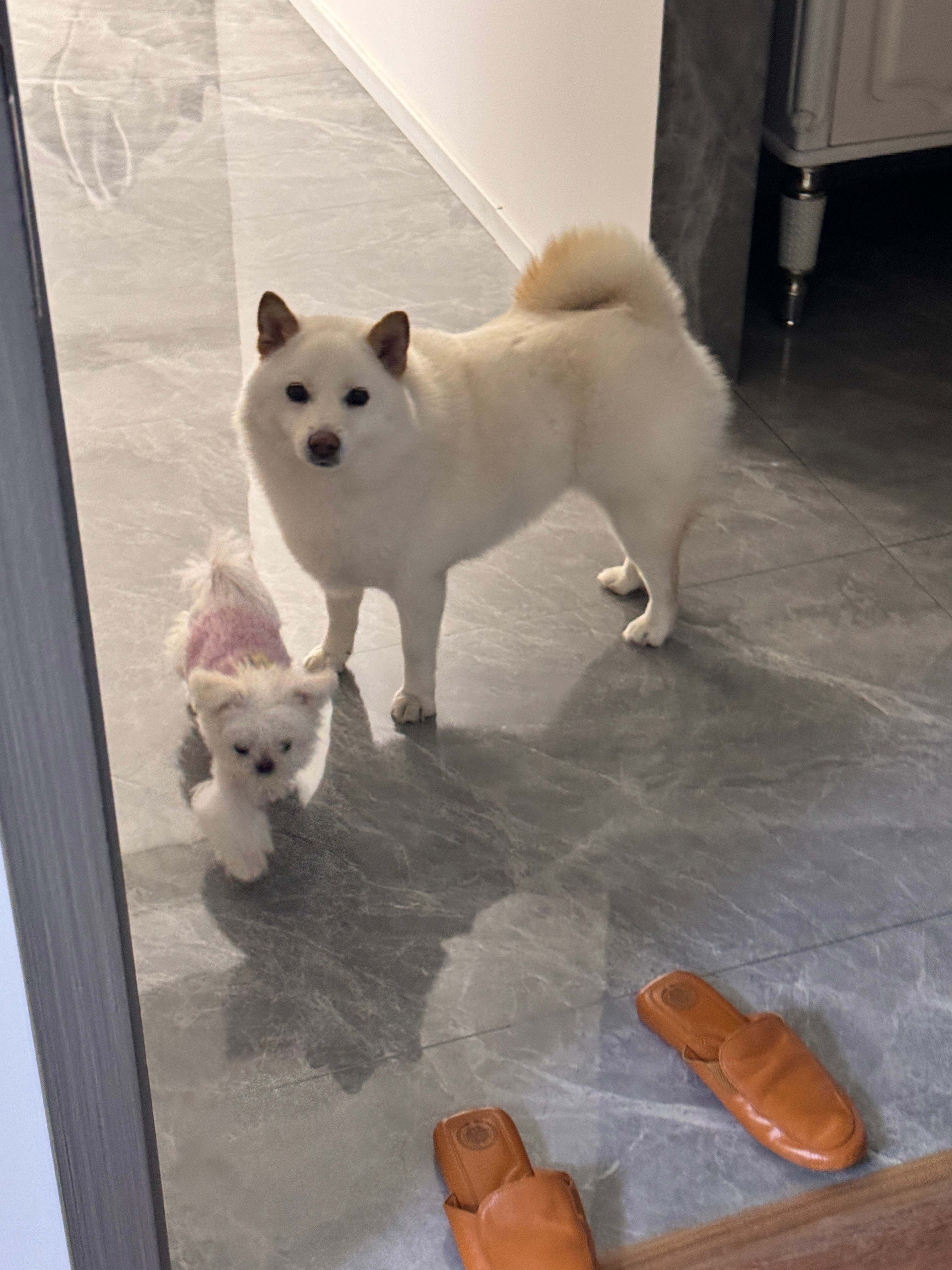 现在也是在我旁边等着吃人类食物的聪明小狗了