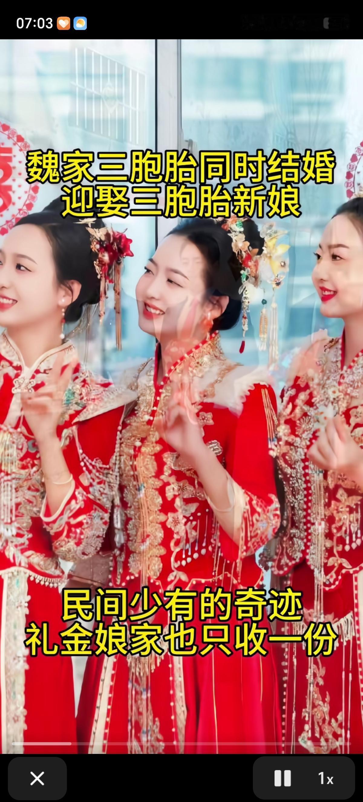三胞胎新郎娶三胞胎新娘,短剧都不敢这么演。 近日,云溪小镇上演罕见一幕:魏家