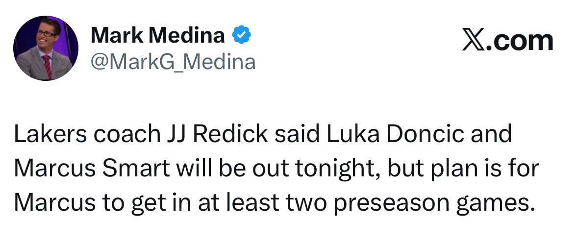 避开勇士? 雷迪克表示,东契奇和斯玛特今晚将缺席比赛,但计划让斯玛特至少参加两场季前赛。 ​​​