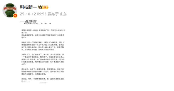 科技新一吐槽 KOL 不审文案,刷虚假互动,企业只看数据白花营销费,行业太重数据轻实效了。