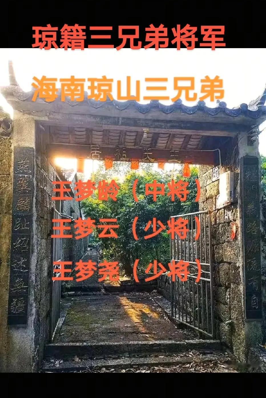 人才辈出!海南籍三兄弟将军![赞] 澄迈三兄弟将军:王俊(中将)、王毅(中将)、王协初(少将)。 琼山三兄弟将军:王梦龄(中将)、王梦云(少将)、王梦尧(少将)。 文昌三兄弟将军:郑庭笈(中将)、郑庭钧(上将)、郑庭筊(上将)。 (注:图片来源于抖音作者岛哥说整理,谢谢整理,让我们了解历史。)