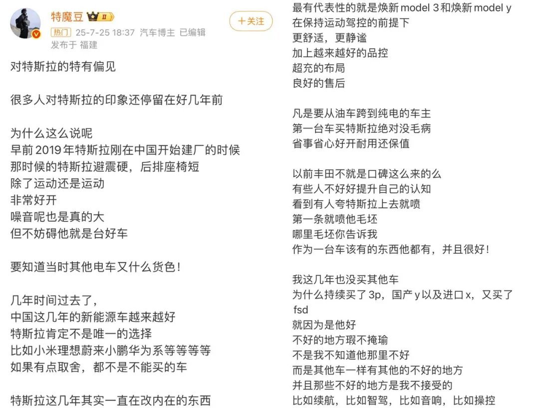博主分析指出,特斯拉之所以能持续收获全球消费者青睐,核心在于产品力的不断精进。