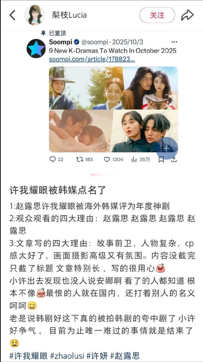 赵露思许我耀眼被权威韩媒评为年度神剧