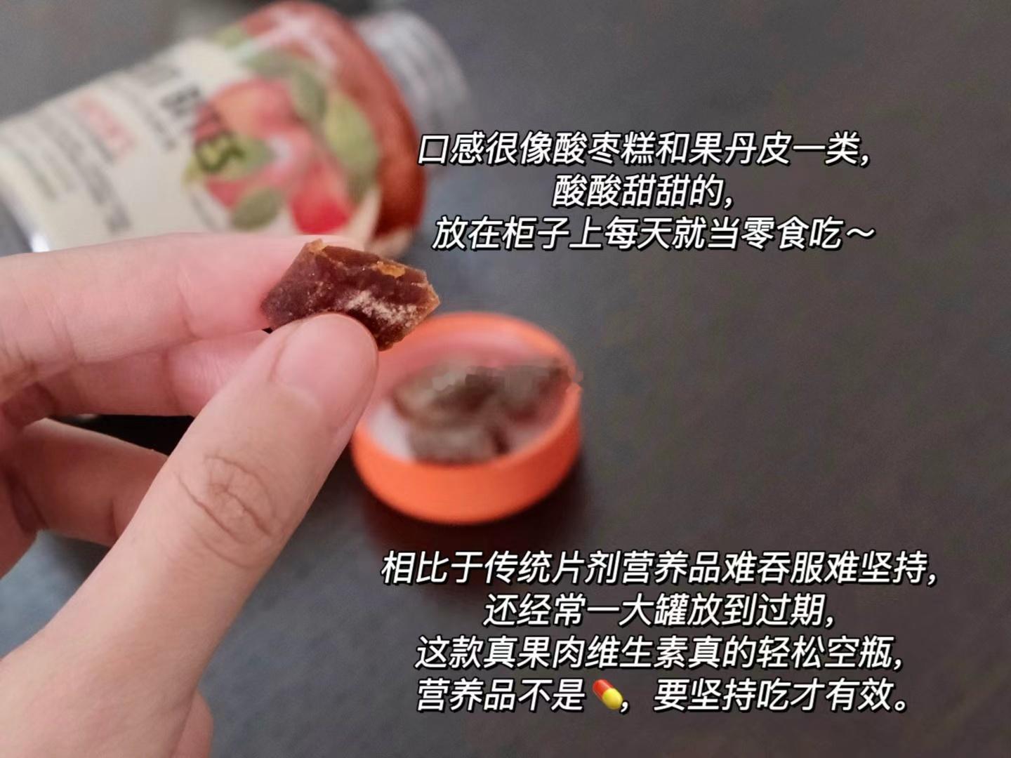 网友心心念念的真果肉维生素,终于返场了!!!毕竟这玩意儿太犯规——天然果肉做的,每一口都可以嚼出酸甜果肉口感,酸酸甜甜可真的太好吃;但居然是正儿八经的维生素!15卡≈没热量,控糖期毫无压力;维生素A/B/D/E+锌+烟酸全配齐,熬夜脸黄、外卖便秘、换季感冒的打工人都被它拿捏得死死的。谁吃谁都会爱上。