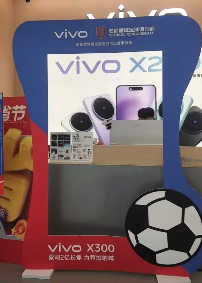 最近在知名手机品牌vivo的线下门店,已经开始预热即将发布的新手机,而这款手机在广告语中,有一个特别之处:成都蓉城俱乐部官方指定赛事神器 这是什么意思呢,因为vivo手机在影像方面很出色,用这款手机到球场去打卡拍照,以及坐在比较高的看台上,也能够很清晰地用长焦镜头来拍照。 要知道,vivo也是欧洲杯的赞助商,许多博主都用这个品牌的手机在欧洲杯上做宣传。 当然,对于成都蓉城来说,这将又是一个商务合作的案例,可以为俱乐部增加收入的情况下,也带来更多的破圈知名度。