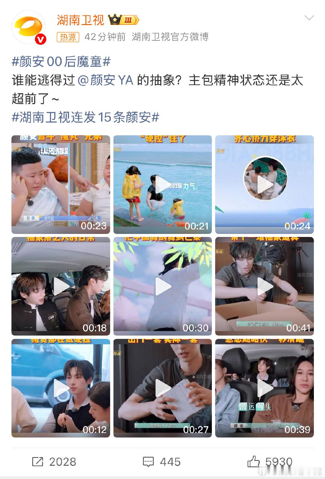 湖南卫视连发15条颜安 ,颜安00后魔童 这波热度我先冲了。