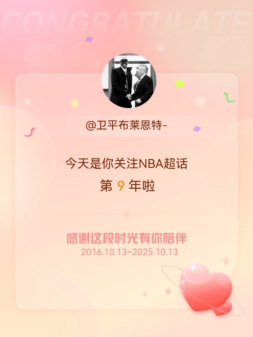 NBA[超话]今天是我关注超话的第9年,希望能继续伴你一路前行~​​​
