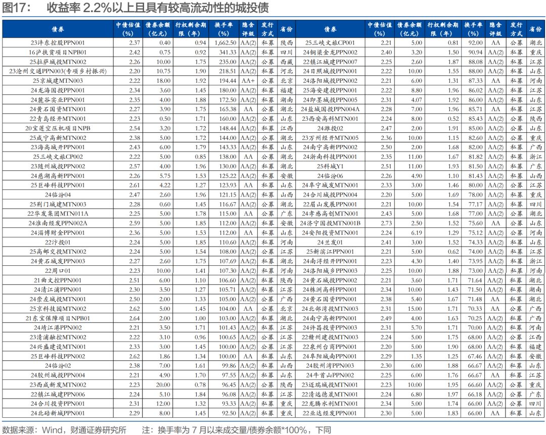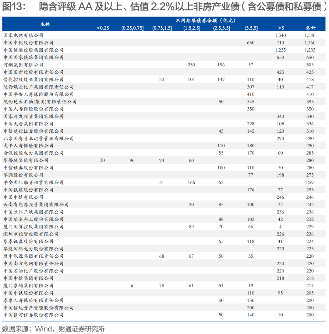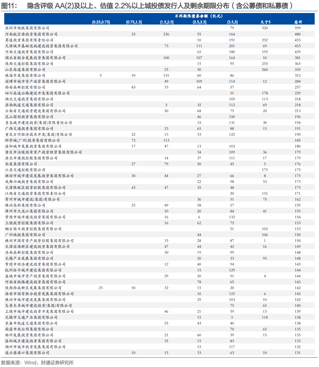 (3)从主体层面来看,我们主要关注2Y左右估值2.2%以上债券存量较大的主体,如豫航空港、津城建、鄂联投、珠海华发、西安高新、科学广州等。
