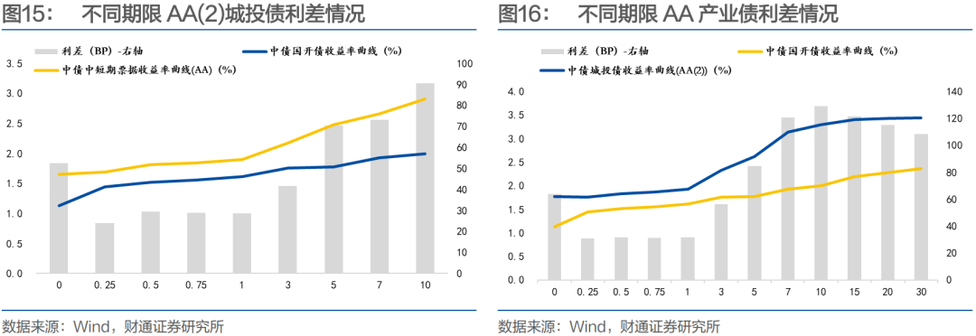 当前市场仍处于震荡区间,短期波动较为明显,对于交易盘而言,仍推荐2年左右短债,虽有波动,但仍然是最坚实的基本盘。此外,2年的久期亦在本轮化债最后期限内,城投安全性相对较高,可以下沉博取收益。而对于负债端稳定的配置型,超长债信用利差明显较厚,可以博弈市场下行之中的资本利得。
