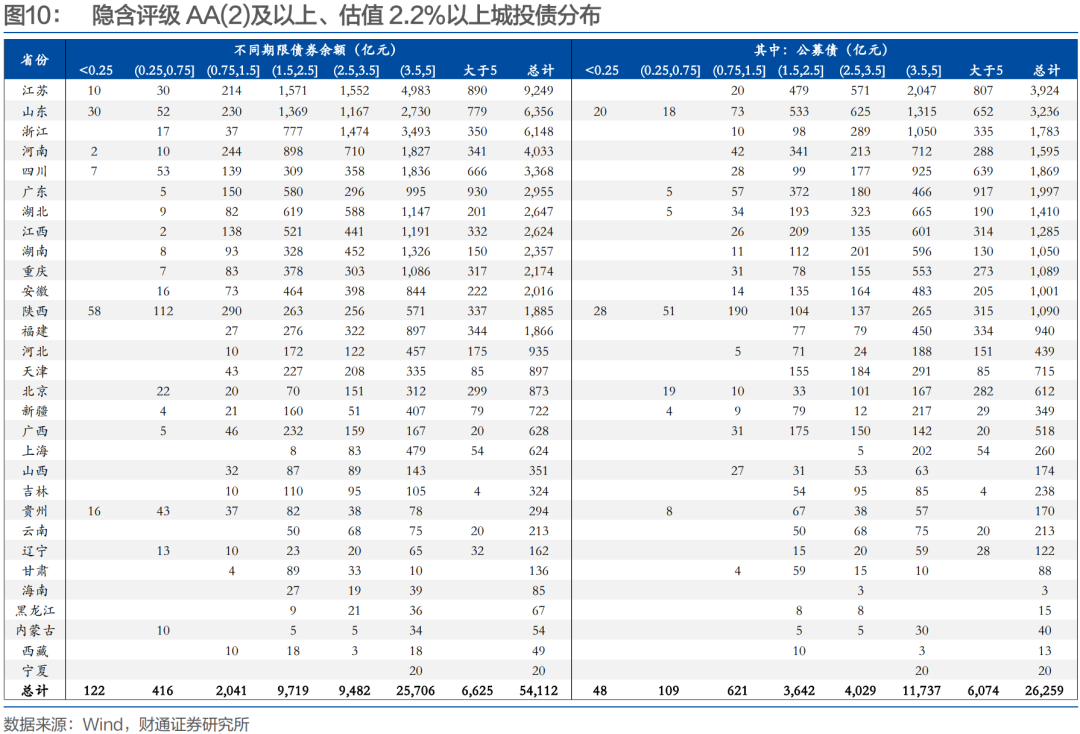 将区域、评级、期限三者结合来看,我们进行了进一步梳理: