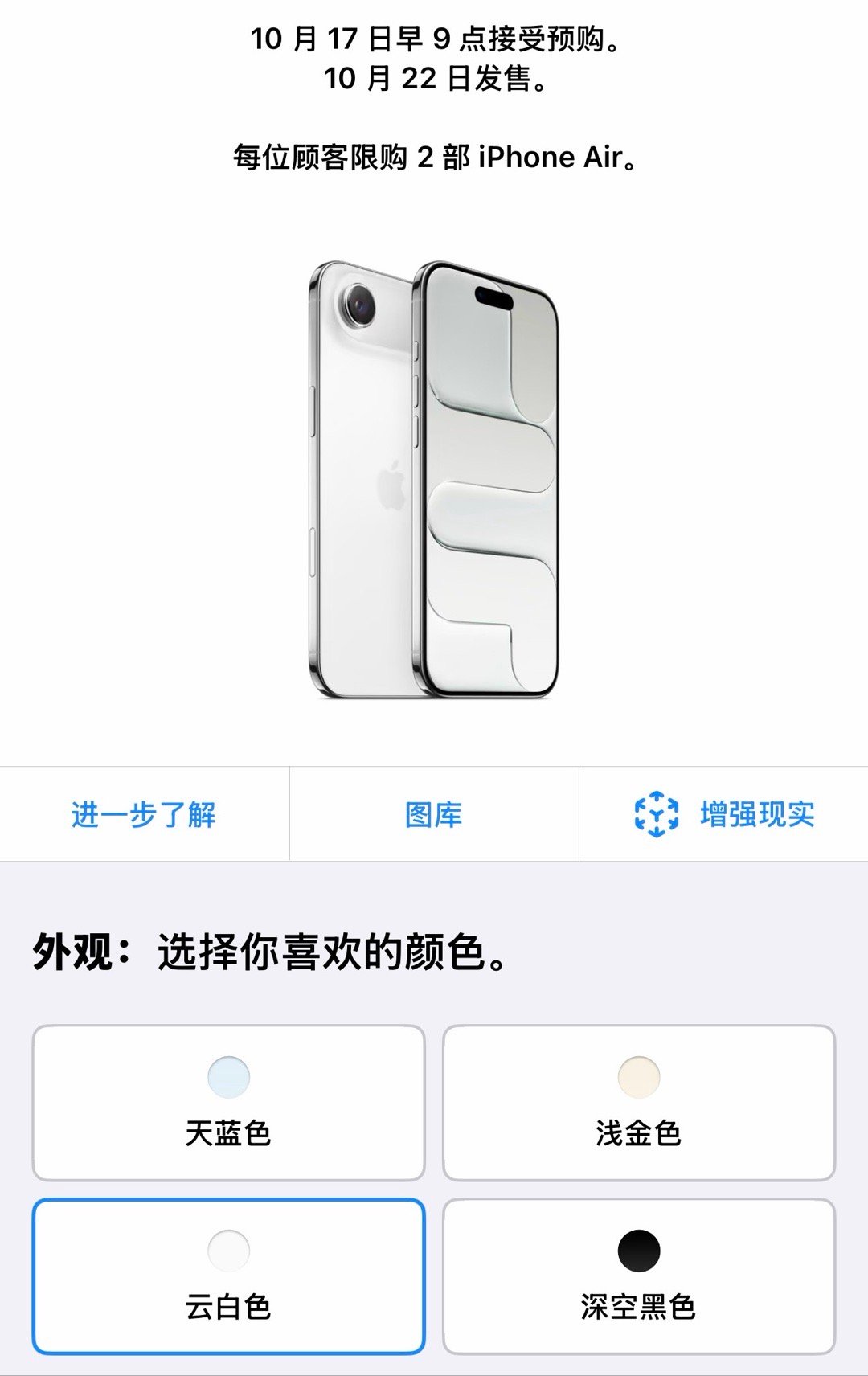 iPhoneAir本周预购苹果官网也更新了,打算入手Air的朋友多吗,还是已经买了港版了[笑cry]我们这边有个同事打算搞一台做主力机,到时候公司应该也要买一台来做配件