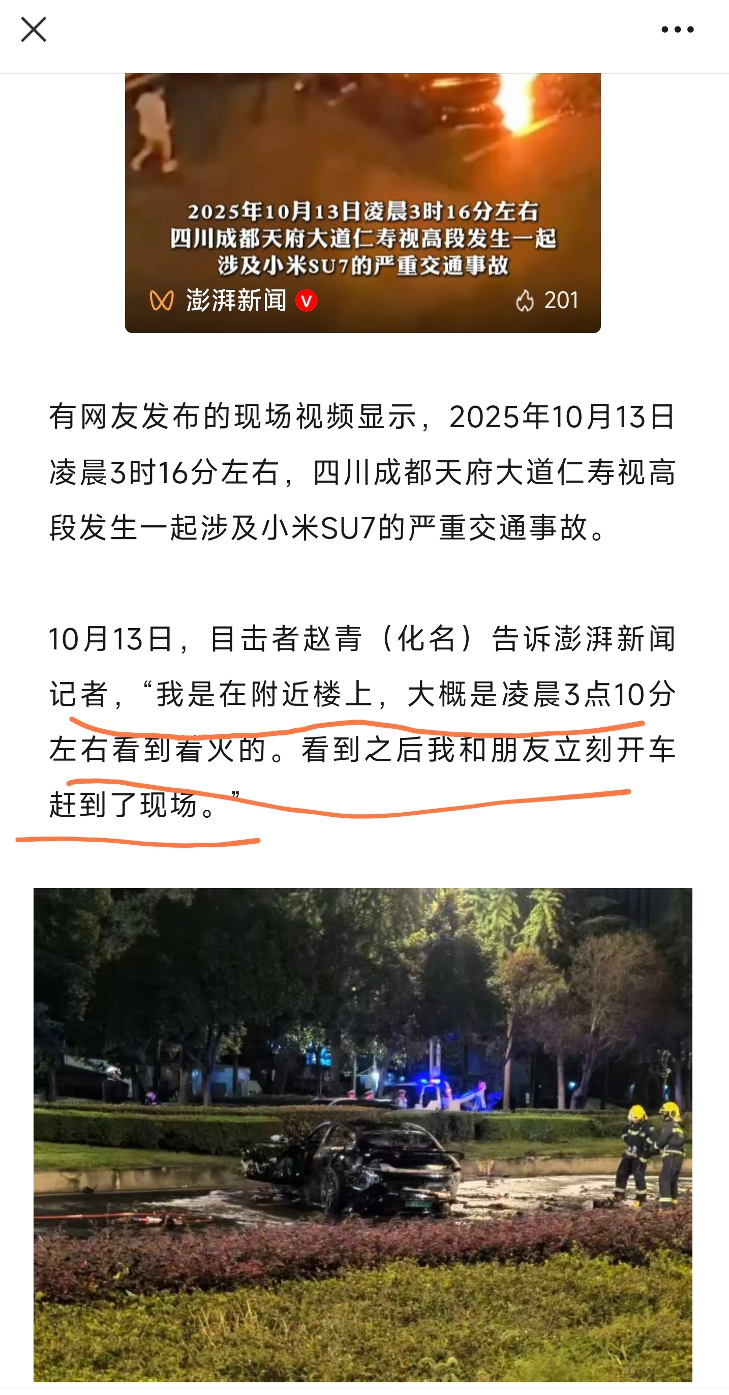 还有这位目击者凌晨3点多,在附近楼上看到了着火,就和朋友立刻开车赶到现场,也是好奇心爆棚。