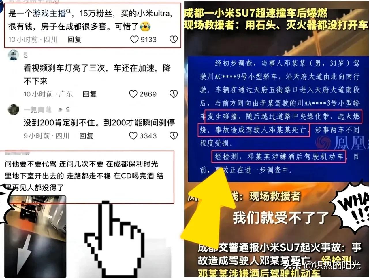 成都天府大道的一起酒驾爆燃事故,涉事车主是一名拥有15万粉丝的游戏主播而且还是富