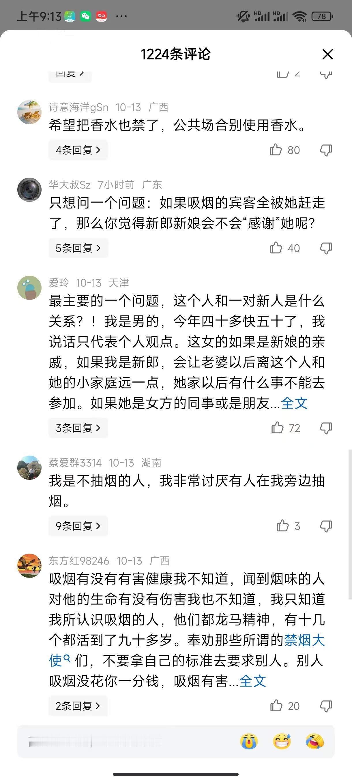 女子竟然禁止婚姻抽烟! 云南,一女子去参加婚宴,发现有宾客吸烟,于是上前阻止,然而女子行为引起网友不满,网友:“你去吃席的,你有什么权利要求别人的婚宴禁止吸烟!“ 我个人长到40了,从来没有见过哪家婚姻不抽烟的,因为来的人大多数都有抽烟的习惯,有的几十年了,而且在忙的时候不可能跑到外面去抽,这个小仙女想凭一己之力阻止也是徒劳。 婚宴是一种特定的场所,宾客来自各个地方及层面,不宜强制禁烟,换个主题,如果是这个女子的喜事,她会这样做吗? 对此网友们表示反对:这种人就是真的没事找事,给人家结婚的一家子找不痛快,给宾客找不痛快,也给自己找不痛快,你不喜欢你可以走啊,可以不来啊,你有什么权利要求人家宾客不吸烟? 也有的表示支持:我也抽烟,但是出去聚会或是去朋友家,但凡有小孩和女人在场,我从来不会当面吸烟,都是叫上朋友一块出去抽。但是同桌都是男人的情况下就随意了。 还有的说,是不是还要禁止喷香水! 大家觉得小仙女应该阻止吗,阻止得了吗?8.58万起长续航混动荣威M7女性抽烟 女生吸烟