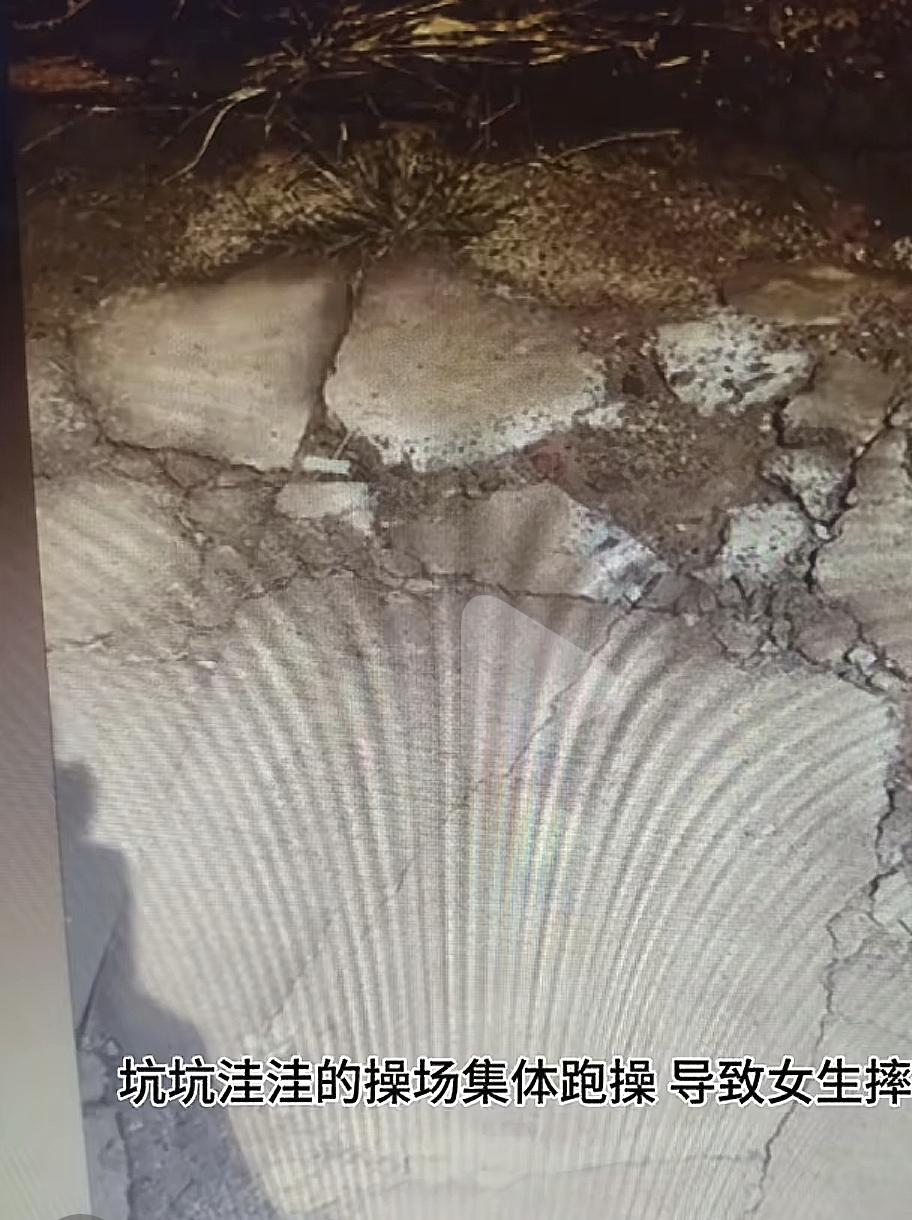 我为这为网友女儿发生:9月18号网友的女儿在操场上跑操,因为地面不平摔倒,在摔倒