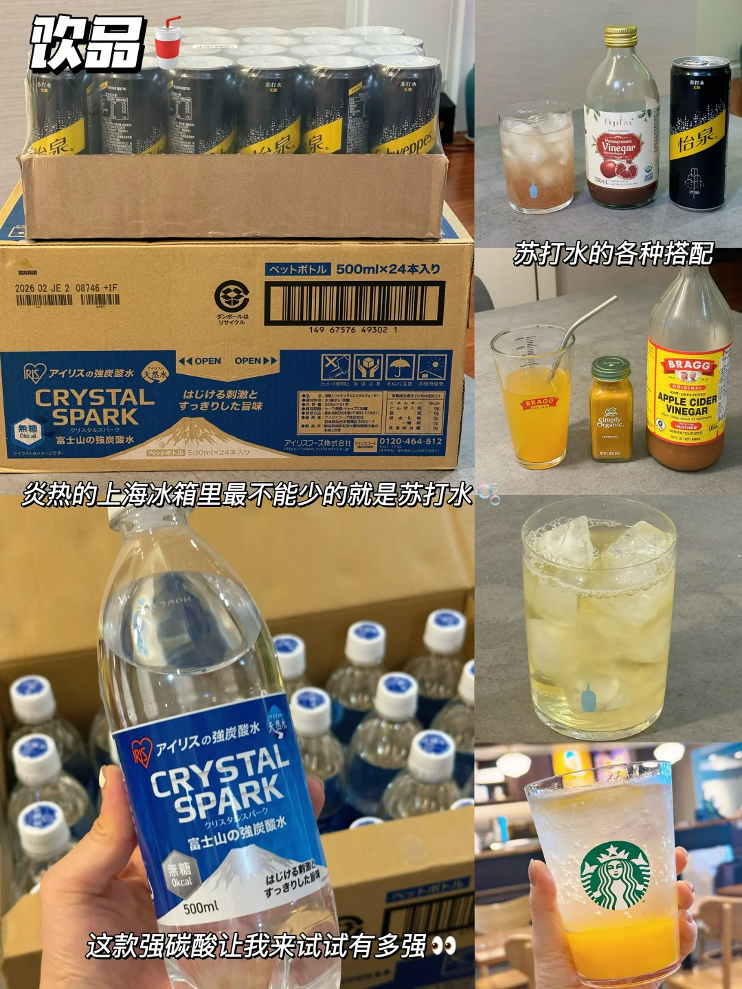 无糖苏打水:最近天太热这个无糖苏打水的消耗速度非常快,吃完立刻补上早上早餐都想来一杯,搭配苹果醋、石榴醋、椰子醋或者蓝莓柠檬原浆这些都好美味