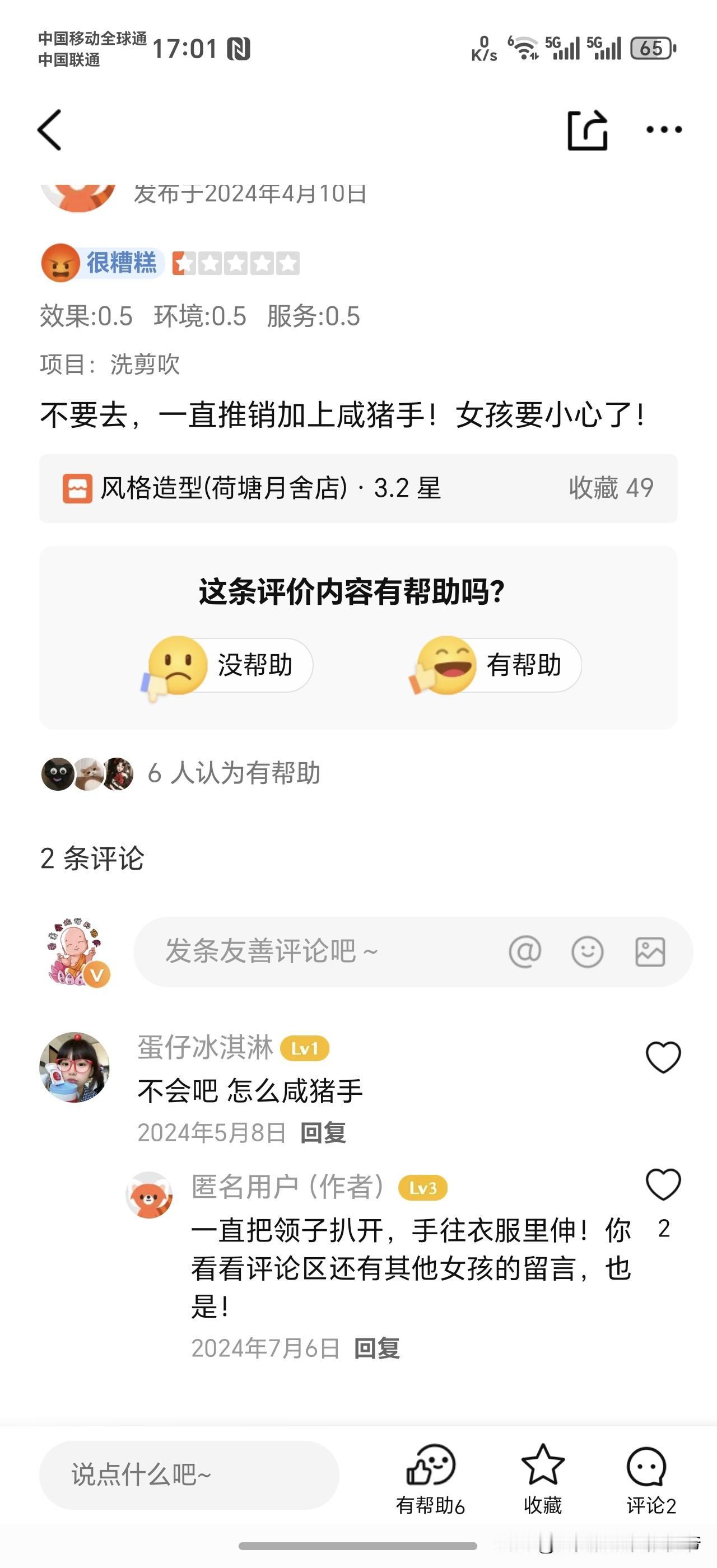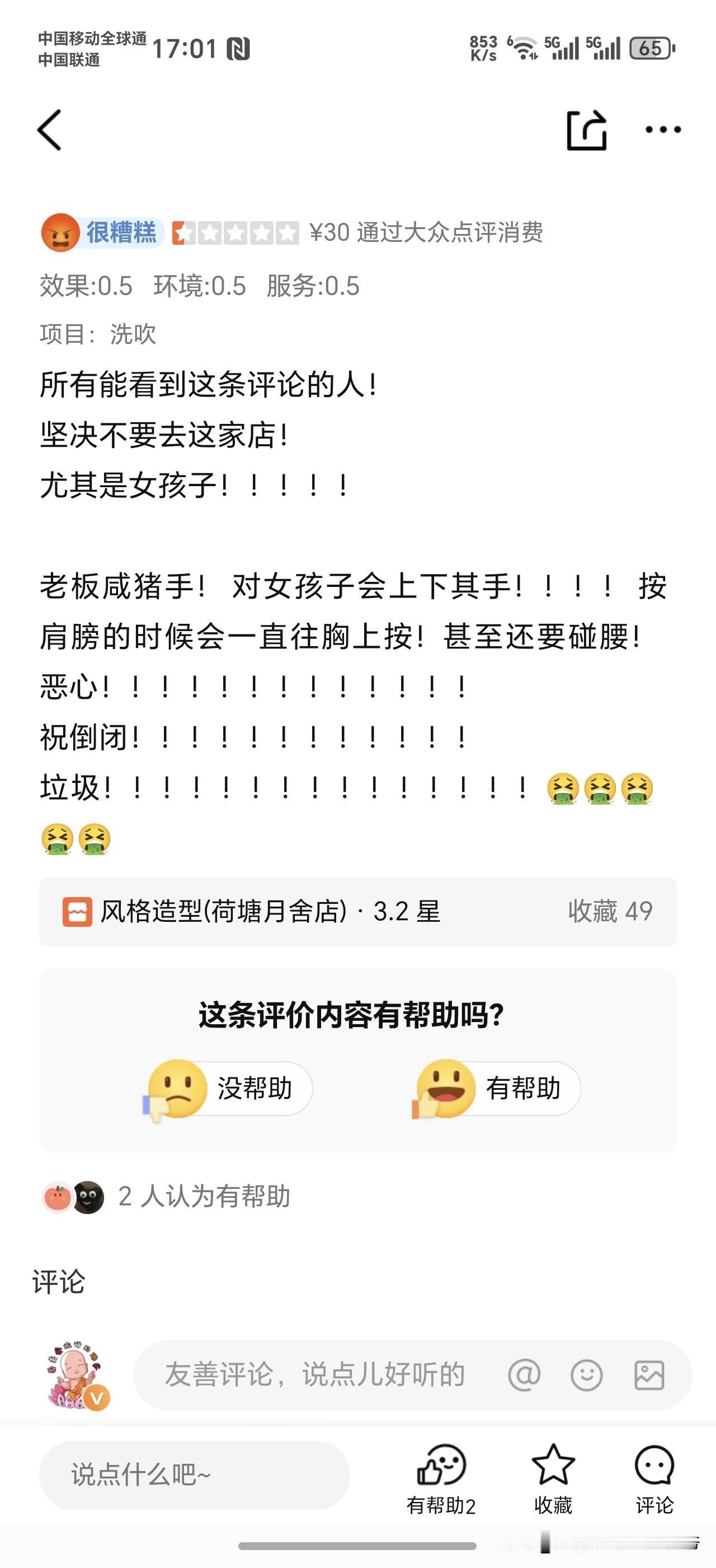 警惕,警惕,某评网上多人反映福州这家风格造型老板对女生下咸猪手,我就奇怪持续这么