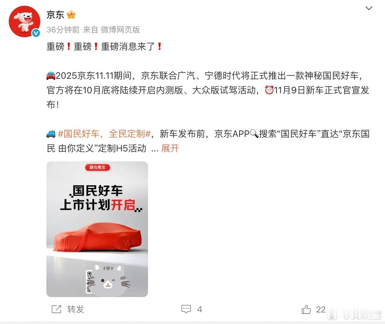 冒个泡 兄弟们这是真的吗?京东联合广汽和宁德时代开始搞汽车了[哆啦A梦害怕]京东造车国民好车,全民定制