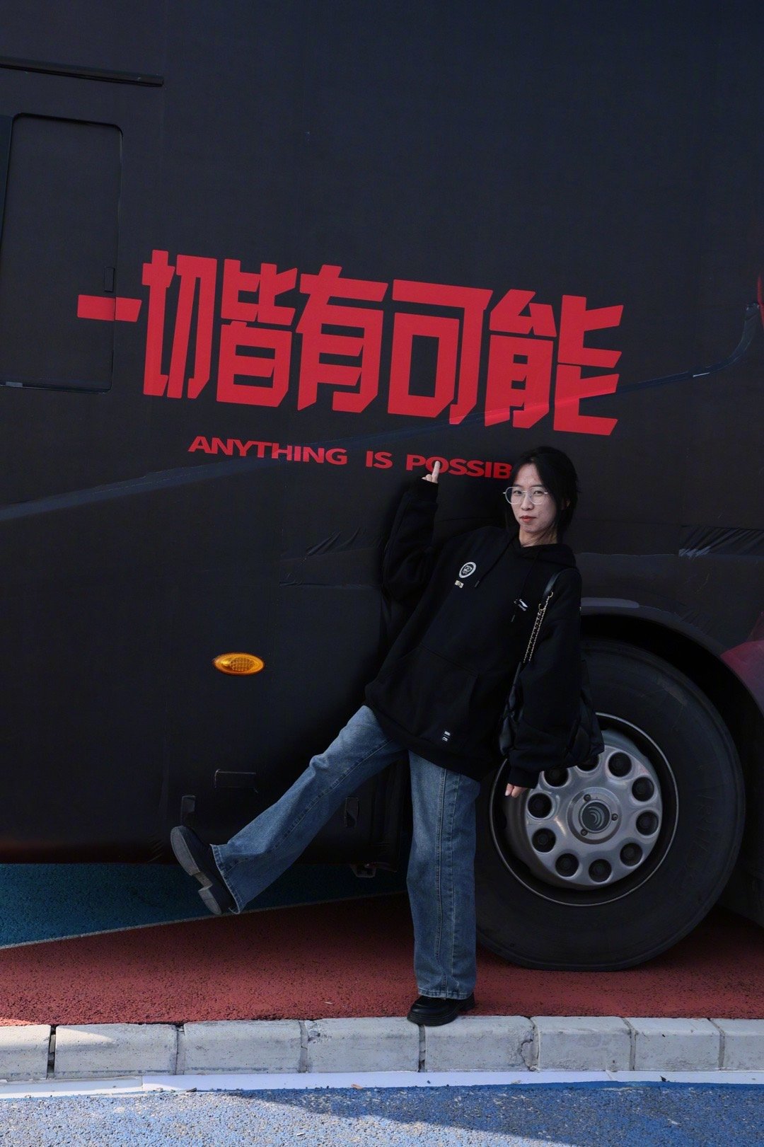 张天爱跟素人合影,胯真的好宽,大宅院似的