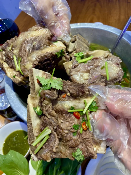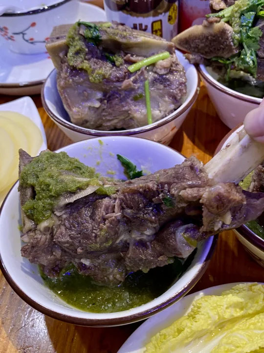 啃棒骨就是随意,徒手撕扯筋膜,吮吸滚烫骨髓,味道太鲜了!真好吃!搭配爱的韭菜花,灵魂伴侣,爱了爱了!