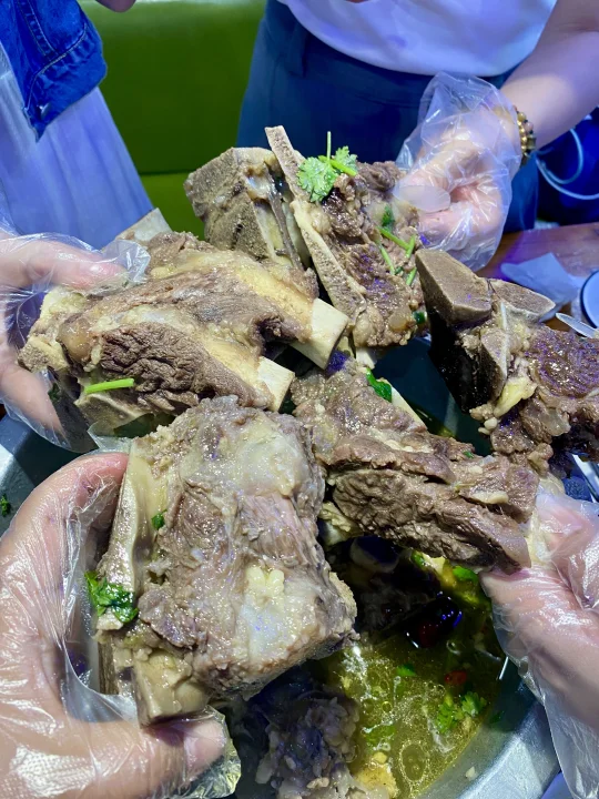 秋分起,辉哥甩出“128元8斤牛棒骨+4份配菜”的王炸组合,牛棒骨被堆成小山,骨髓油亮,筋肉颤巍!分量十足!
