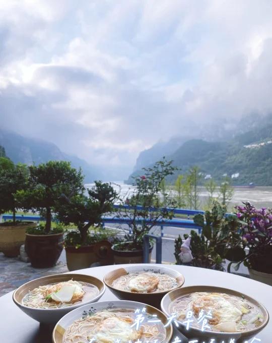 宜昌的美你来了才知道 宜昌库存还没完(已经懒得不想发了 这是自驾G348路线上的一家客栈 三峡的美,只有你来了才知道有多么壮观 中午赶到吃了鱼🐟就继续出发自驾 第二天早起煮了一碗清汤面,面很一般 但配着这个环境,眼看向远方 一切都是美好的 宜昌 三峡 G348