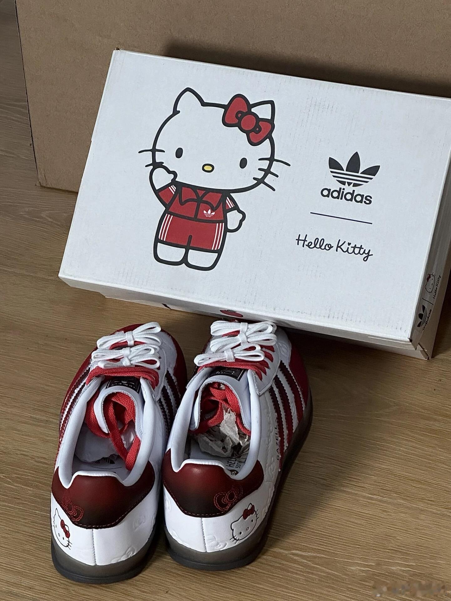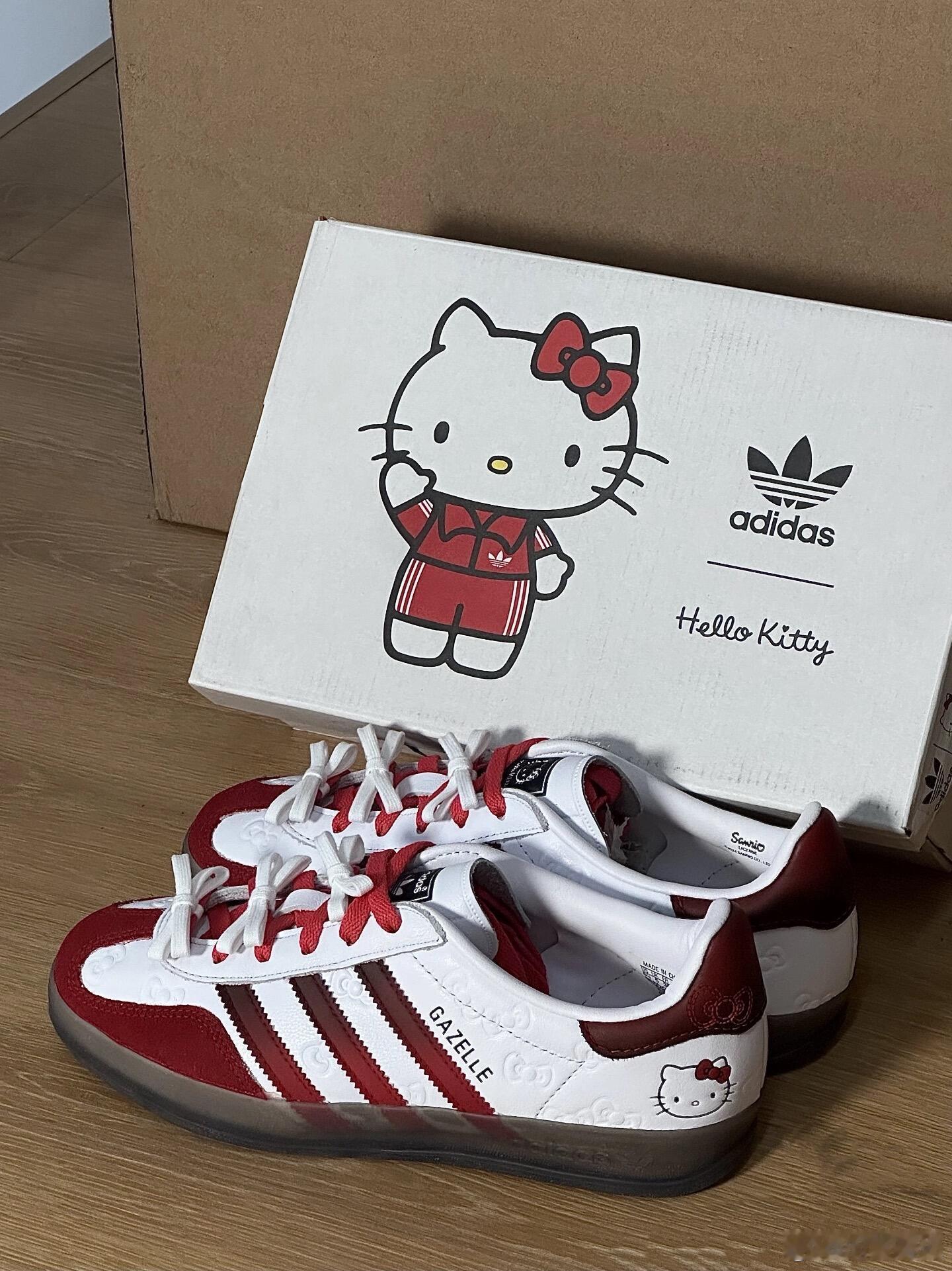 这双阿迪达斯与凯蒂猫(HelloKitty)的联名运动鞋,巧妙融合了运动活力与