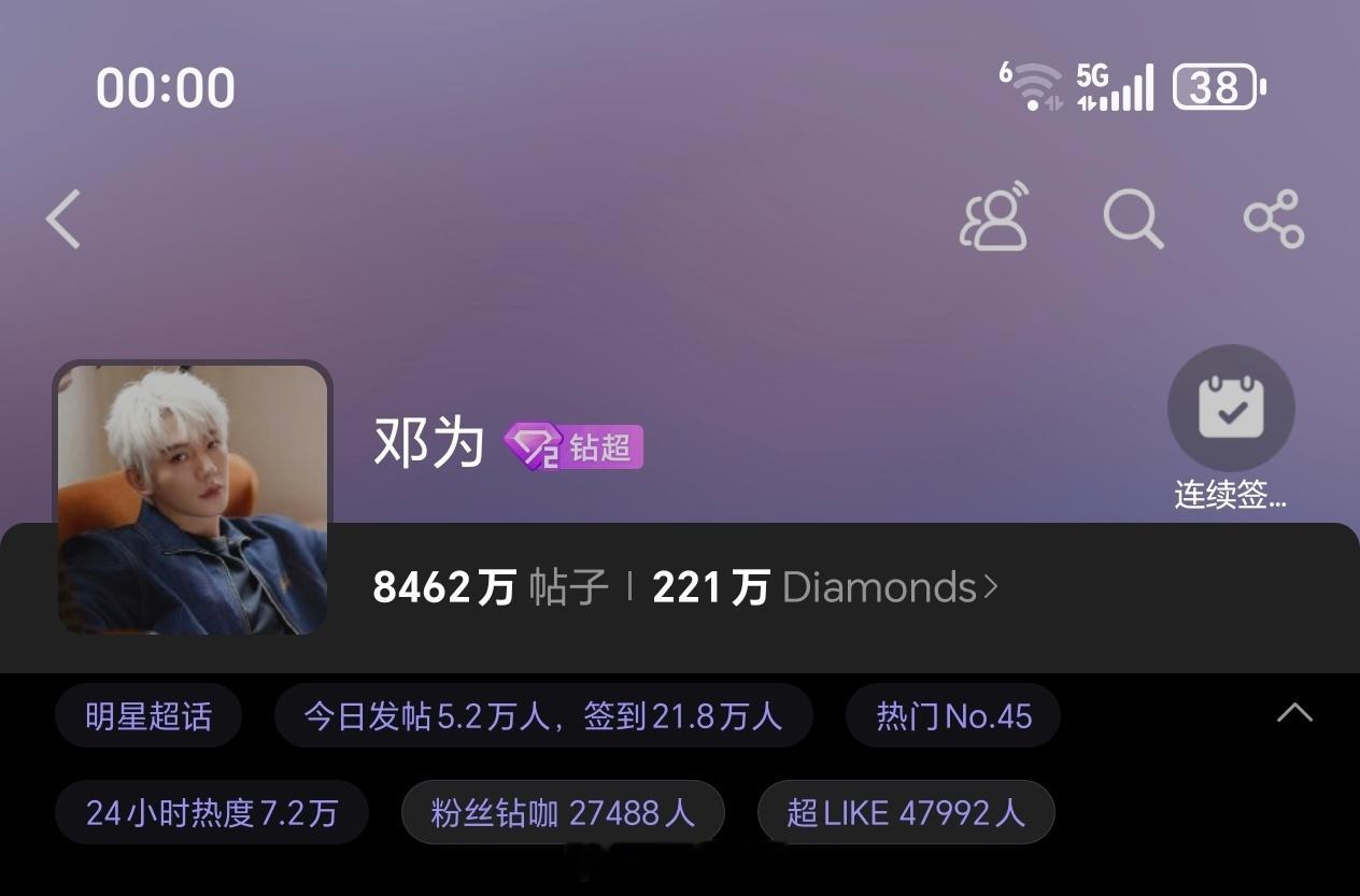 邓为昨日超话发帖5.2万+。超like4.7万+