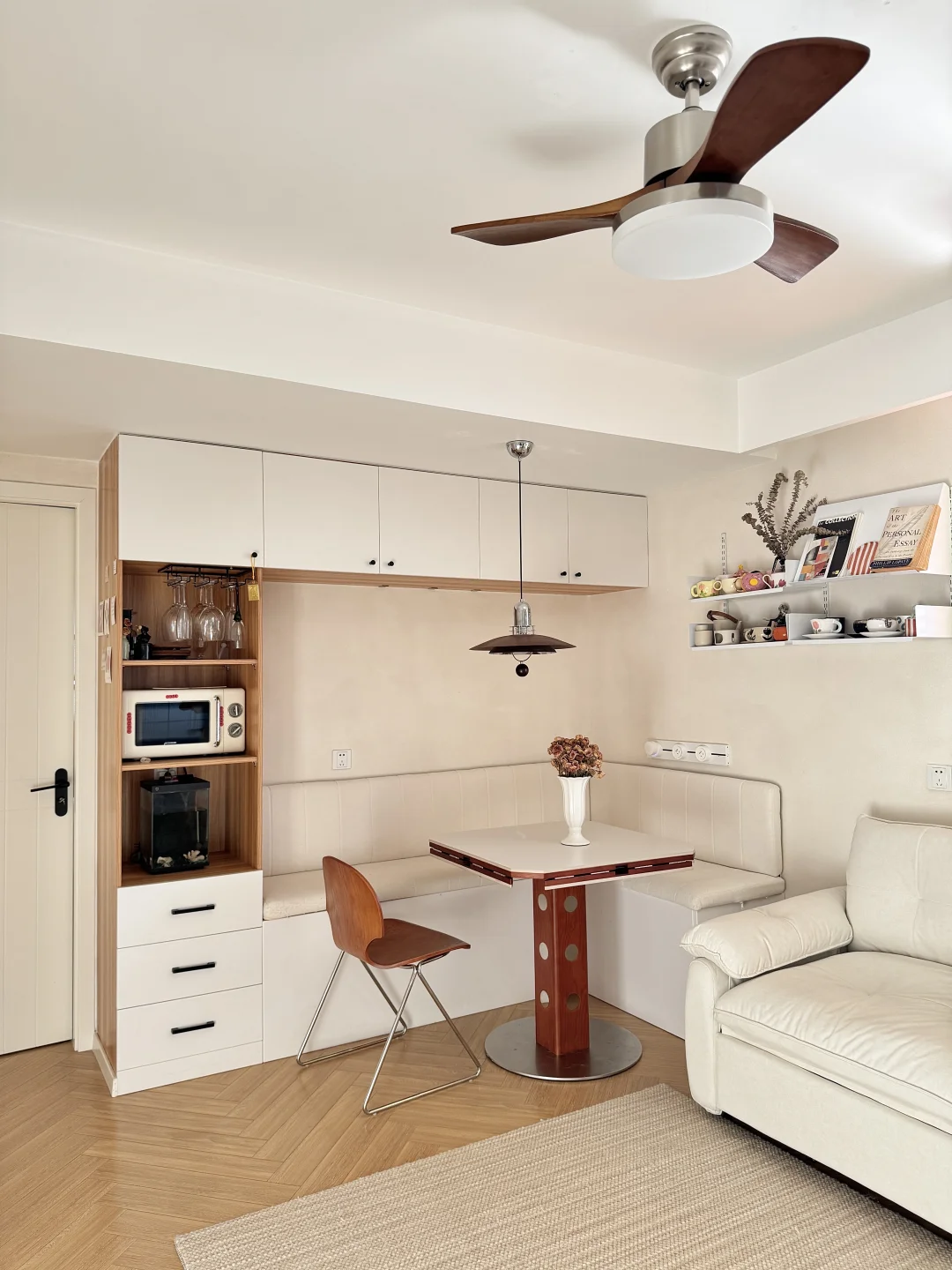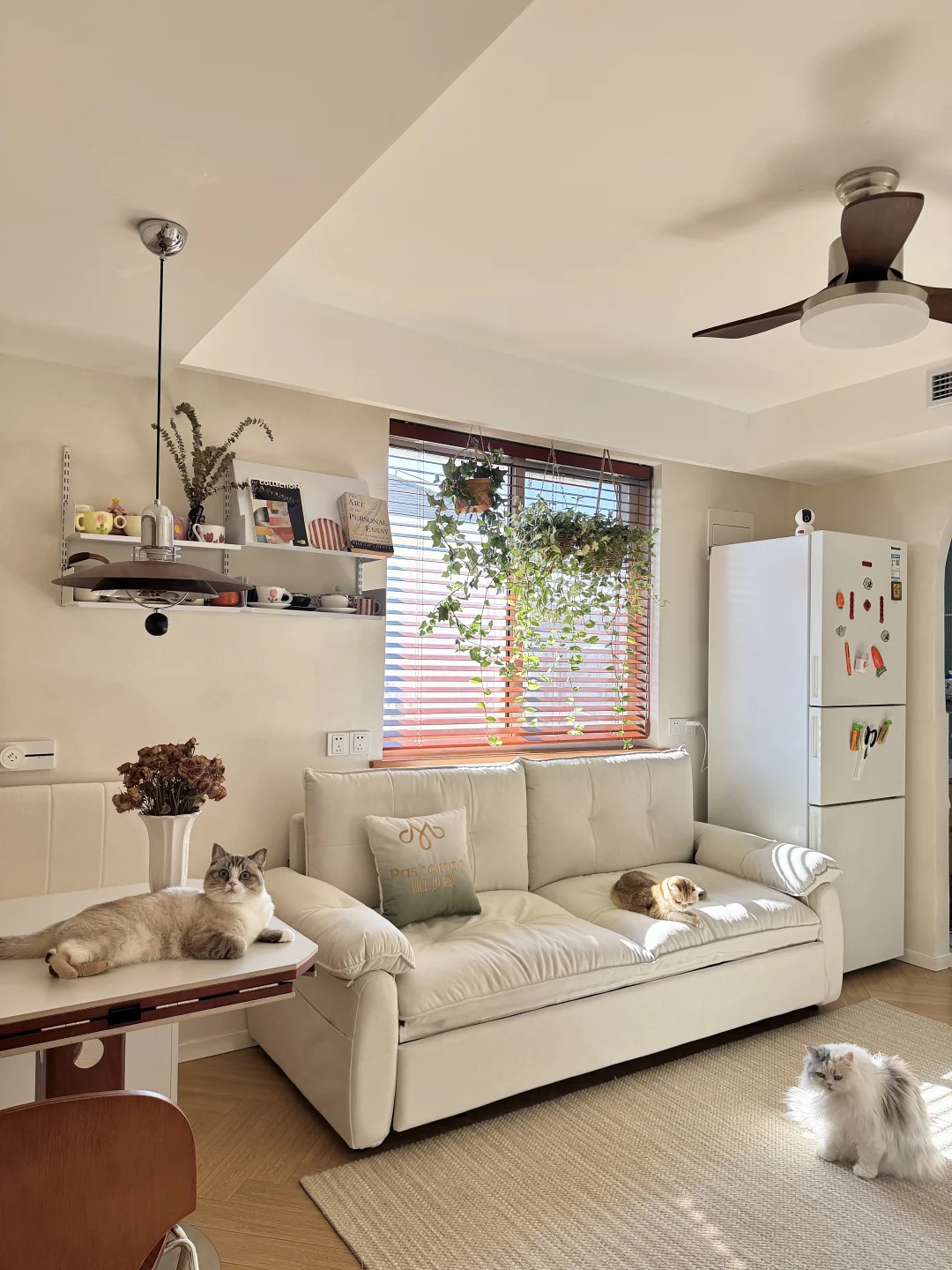 客厅是我家最得意的设计,虽然只有小小的15平,但麻雀虽小,五脏俱全。可休闲可娱乐可用餐,特别实用~