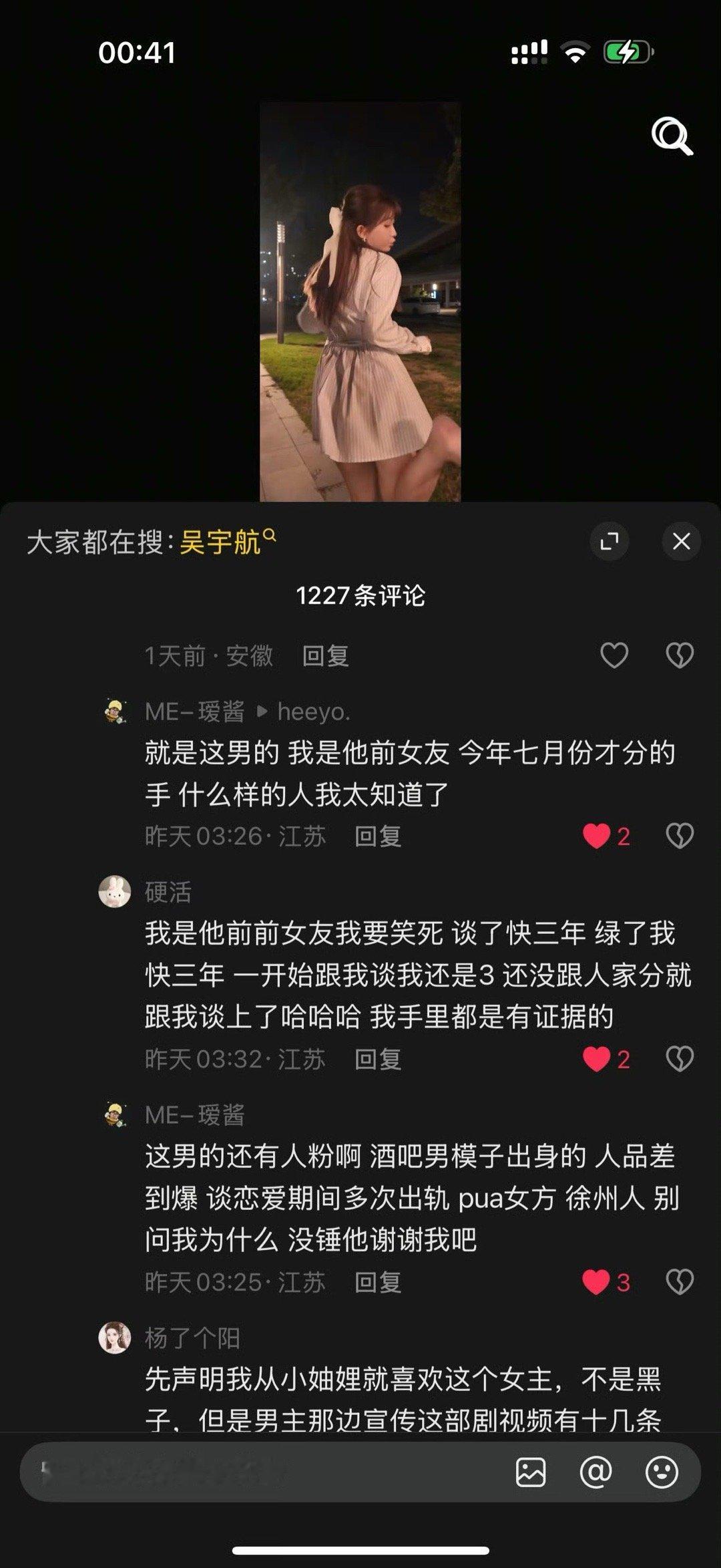 吴宇航的前女友们在评论区报道呢! 金针菇[笑cry]