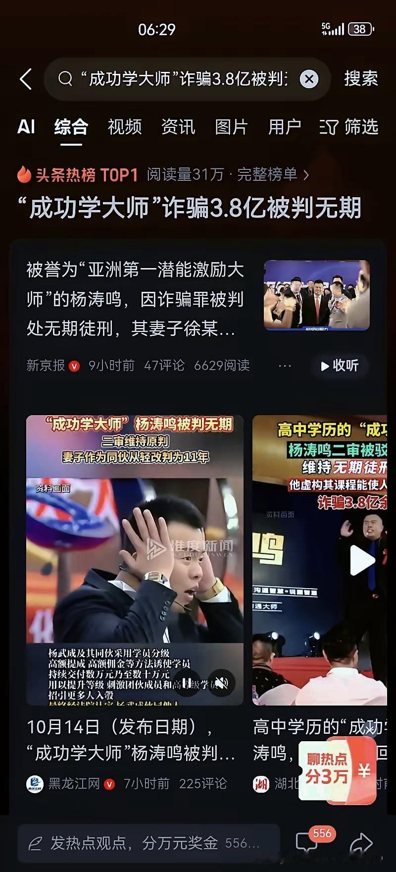 家人们,“亚洲第一潜能激励大师”杨涛鸣,这回栽了!刚判的无期,7年骗了3.8个亿,这哪是成功学,分明是把贪婪和焦虑织成的骗局! 一个高中学历的农村青年,咋能忽悠2万多人?全靠三步狠招:先拿680元初级课勾人,再一步步套到3万、14万的“总裁班”,最后宰60万的“钻石私教课”,小钱钓大鱼的套路玩得溜。还搞封闭会场,放激昂音乐、让学员凌晨上课削弱理智,甚至弄“吞火把”“踩火炭”的戏码,谎称“宇宙能量加持”,净整这些假大空的噱头。更损的是拉人头返佣40%-50%,让学员为止损被迫坑身边人,形成恶性循环。 真成功哪能靠花钱买?他们嘴上喊着帮你成功,心里巴不得你当“韭菜”!大家身边有没有人差点被成功学忽悠过?都来聊聊咋避开这些坑!